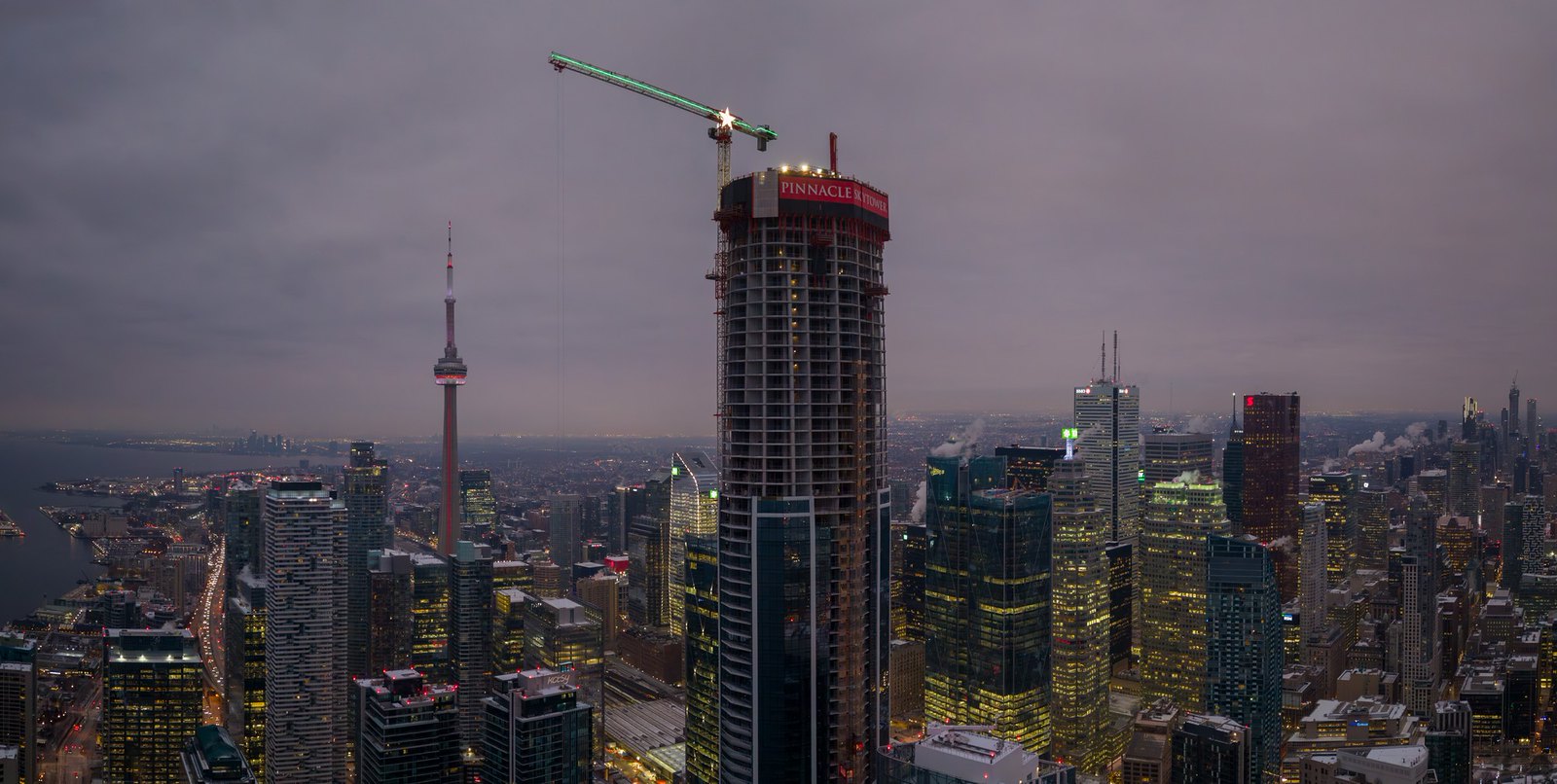 One Bloor West’s steel mechanical structure is almost completed - soon they will hoist the tuned mass damper up to the top.