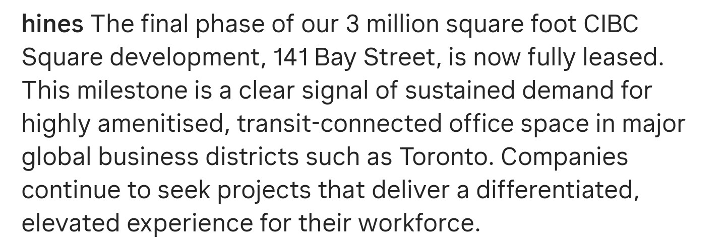 La vitesse que Toronto et l’Ontario sont en train de nous mettre en termes de nouveaux projets…