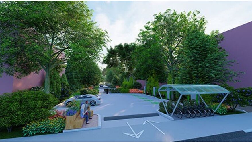 Étant donné que ce secteur se veut attractif pour les résidents du quartier, il y aura deux placottoirs pour permettre la socialisation et les stationnements seront verdis par 75 arbres feuillus, des conifères, des arbustes et des plantes vivaces. Un hôtel à insectes y sera aussi aménagé.