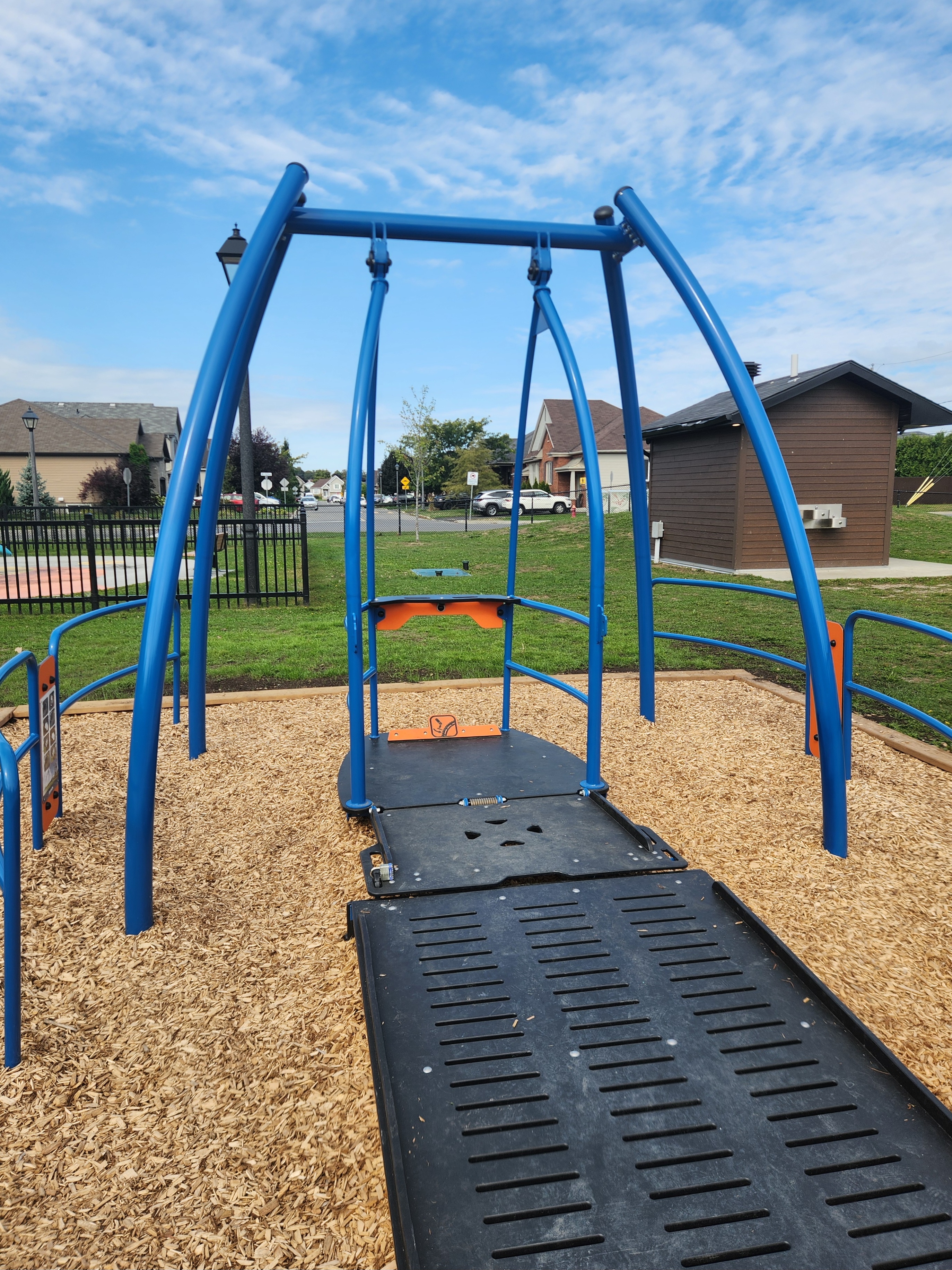 C’est la première fois que je vois une balançoire pour personne en chaise roulante. Ici dans un parc de banlieue.