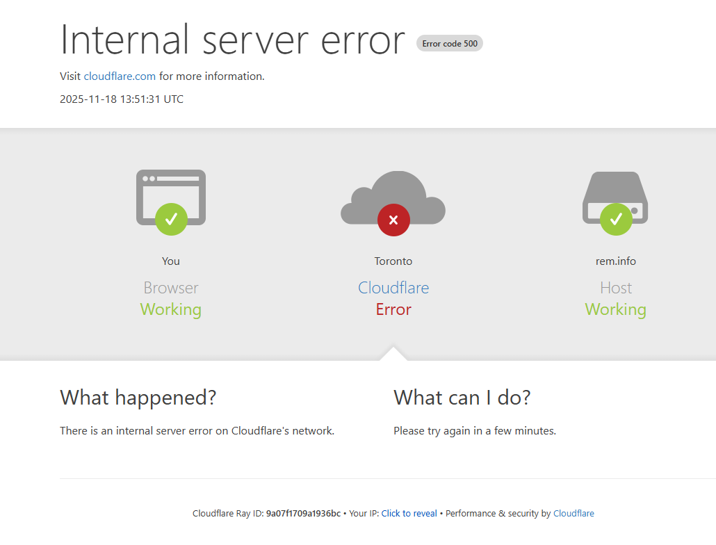 Il semble y avoir une panne du service Cloudflare utilisé par rem.info.