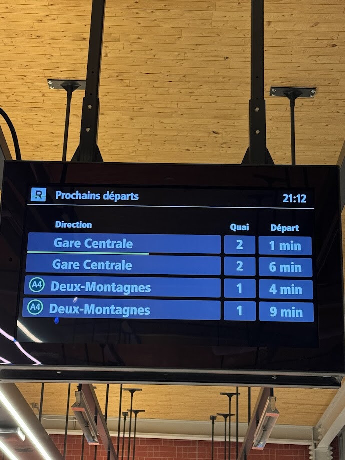 Sinon, encore une fois, il serait vraiment bien que le REM diffuse publiquement sur internet le contenu de ses écrans de départs dans les stations, ce ne devrait pas être compliqué puisque clairement le feed existe déjà. Je me souviens vaguement qu’il était possible de voir le feed des écrans de l’AMT il y a une dizaine d’années sur un site web.