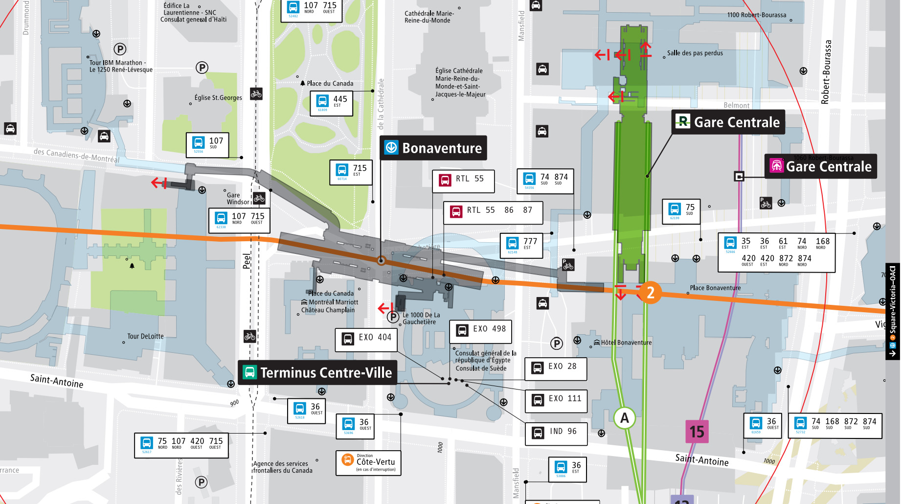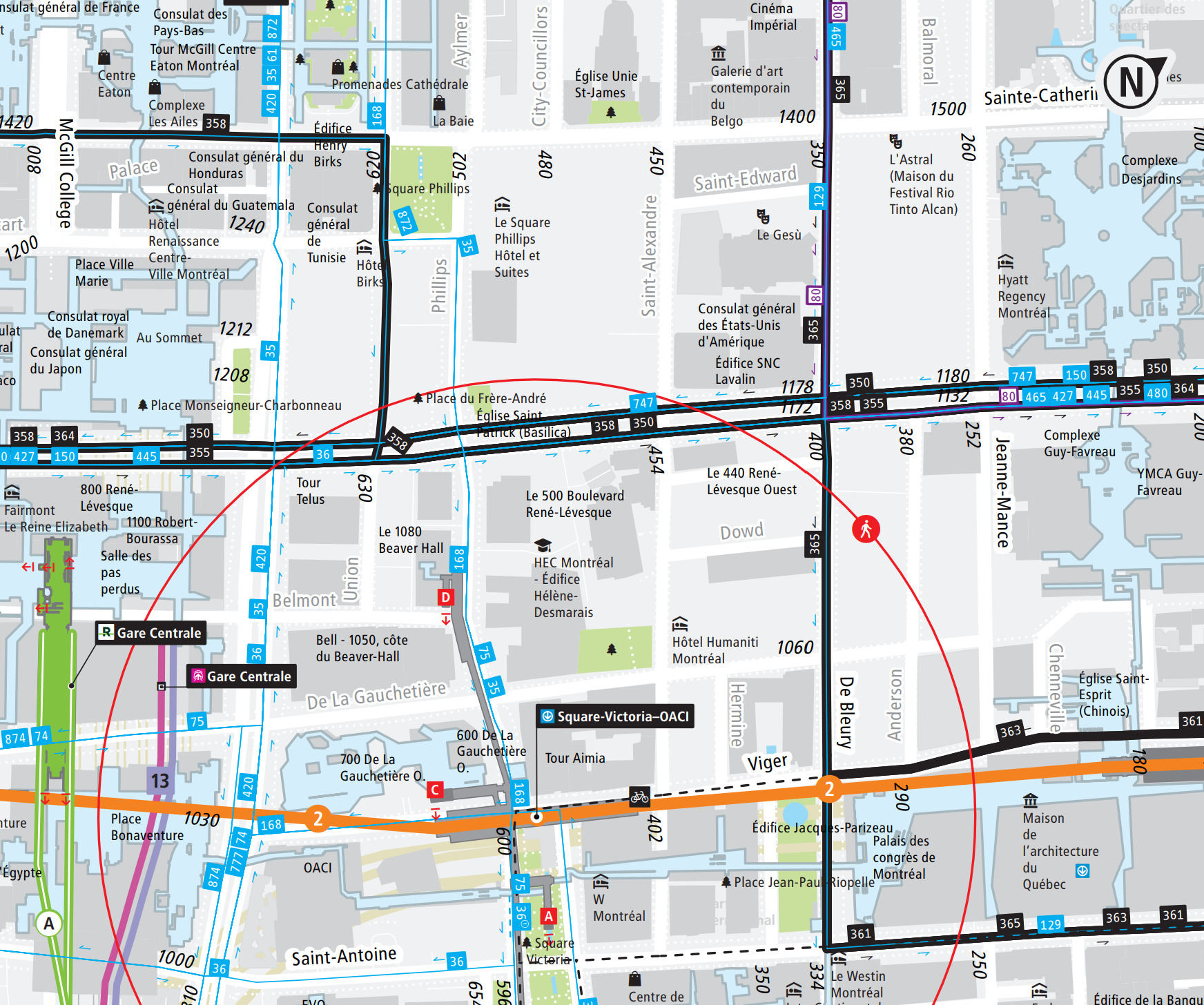 Ils ont updaté le contenu ‘‘transport en commun’’ mais pas le reste. Ça indique encore SNC-Lavalin avec le consulat Américain, alors que ça fait plusieurs années qu’il a déménagé sur Ste-Catherine