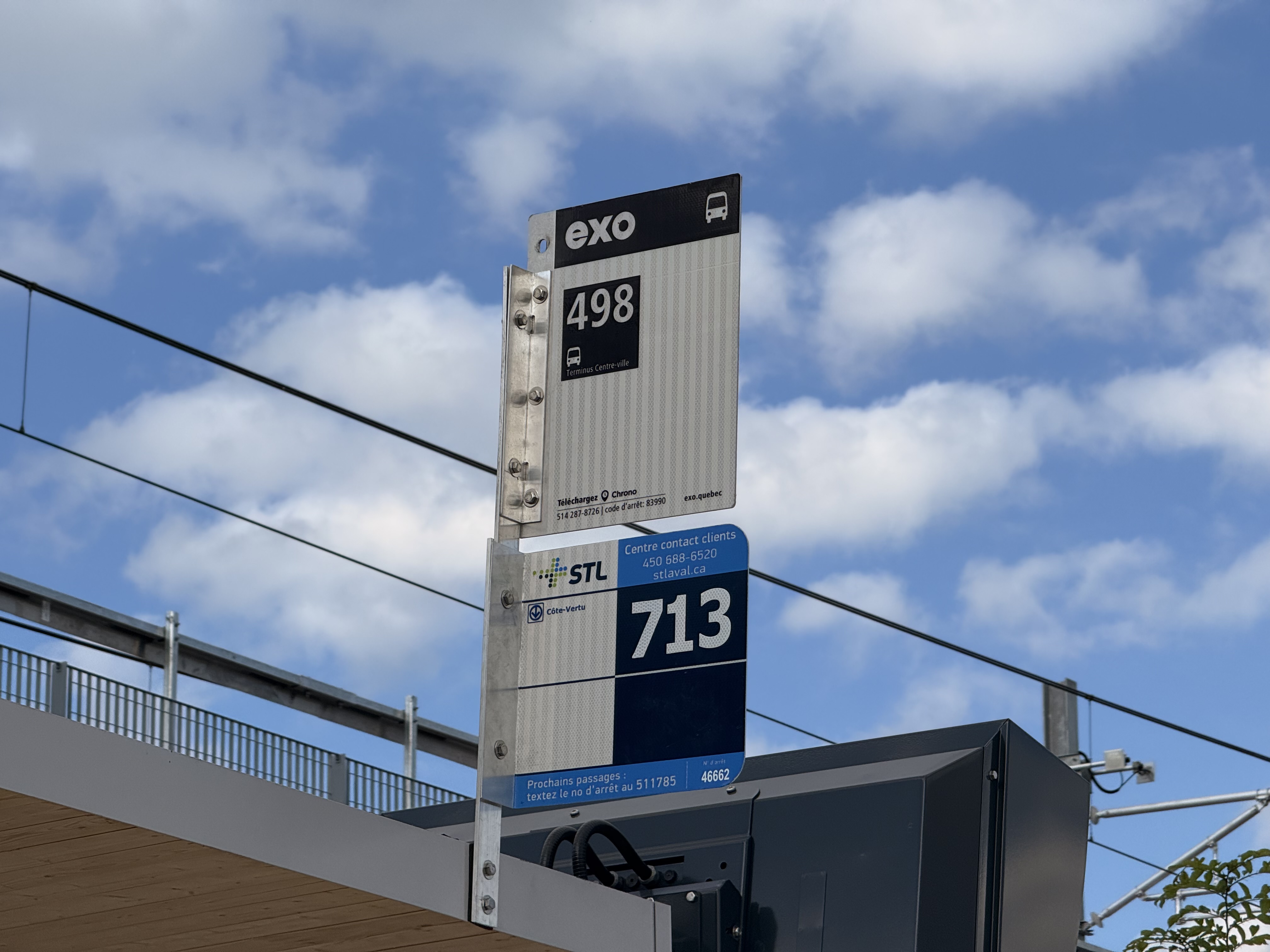 - Le panneau pour la 498 en direction de Montréal n’indique pas les correspondances avec le train, le métro et le REM.