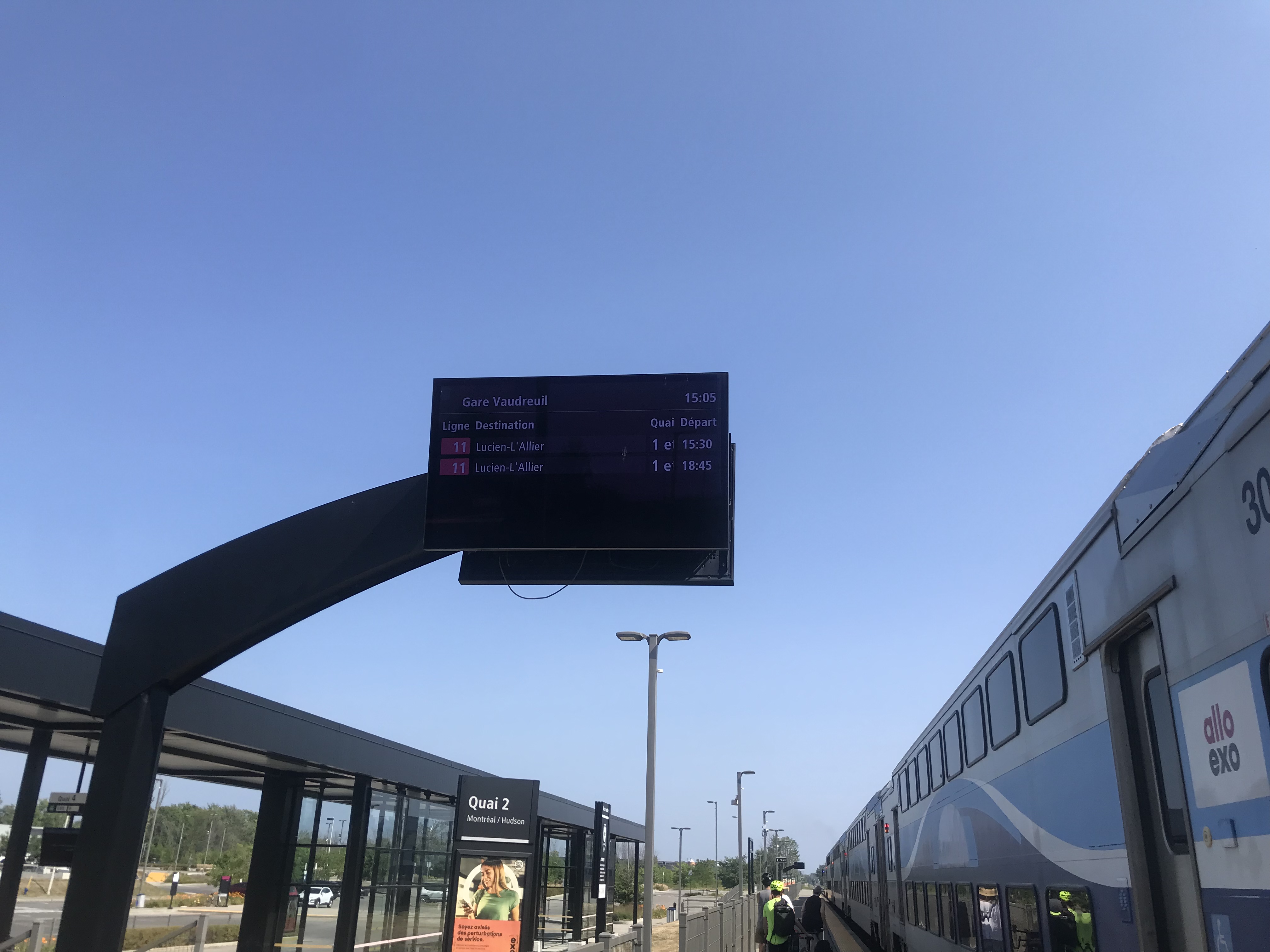 « L’embarquement pour le train de 15:30 à destination de Lucien-L’Allier se fera sur les quais 1 e »