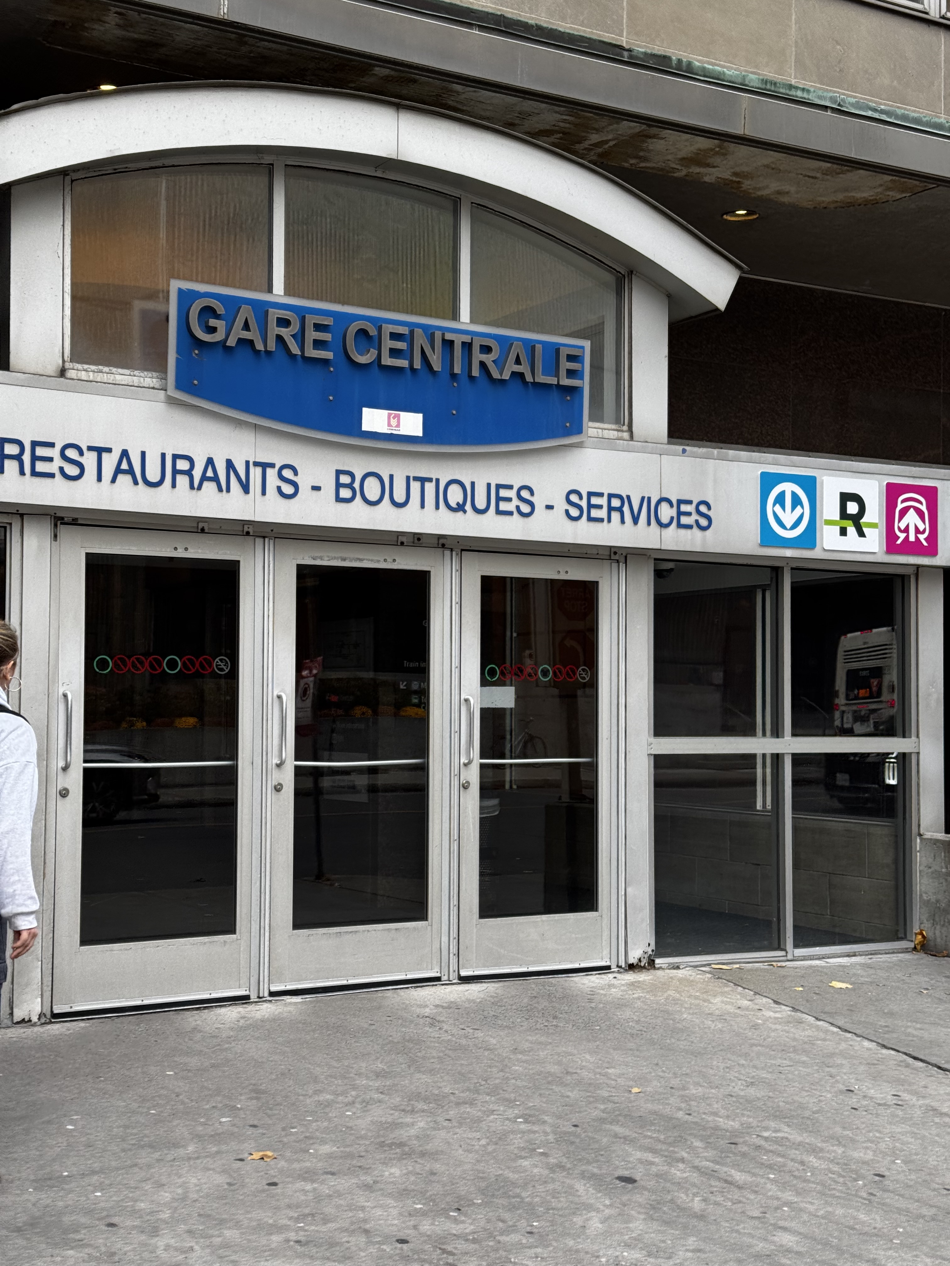 La STM n’est pas soumise au CNB et respecte plutôt la norme NFPA 130, et n’est donc pas tenue de respecter la norme ISO 7010 du petit bonhomme sur fond vert tant que c’est écrit «Sortie» à des endroit précis et à certaines conditions.