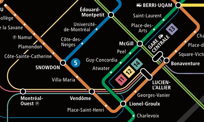 Je suis surpris que sur ces plans à jour, on n’indique pas la présence d’ascenseur, spécialement à McGill pour indiquer, qu’elle entrée est celle avec des ascenseurs.