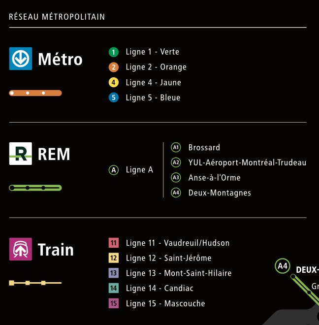 The “Réseaux” (now referred to Réseau Metropolitain) has also changed, to now have the line number instead of just the name. I’m assuming gradually in the future we will no longer have named lines, and it will just be referred to by the number: