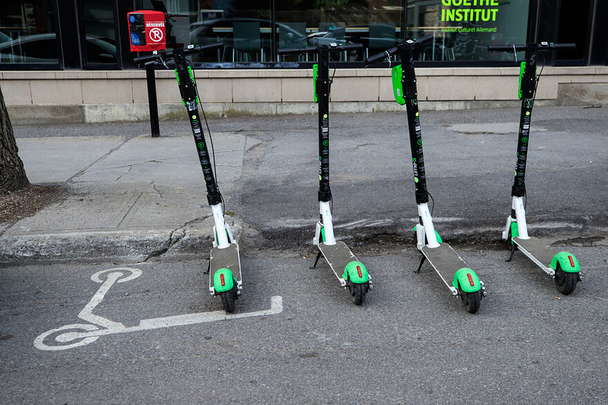 Les trottinettes électriques en libre-service ont été interdites à Montréal en 2020 après un projet-pilote non concluant.