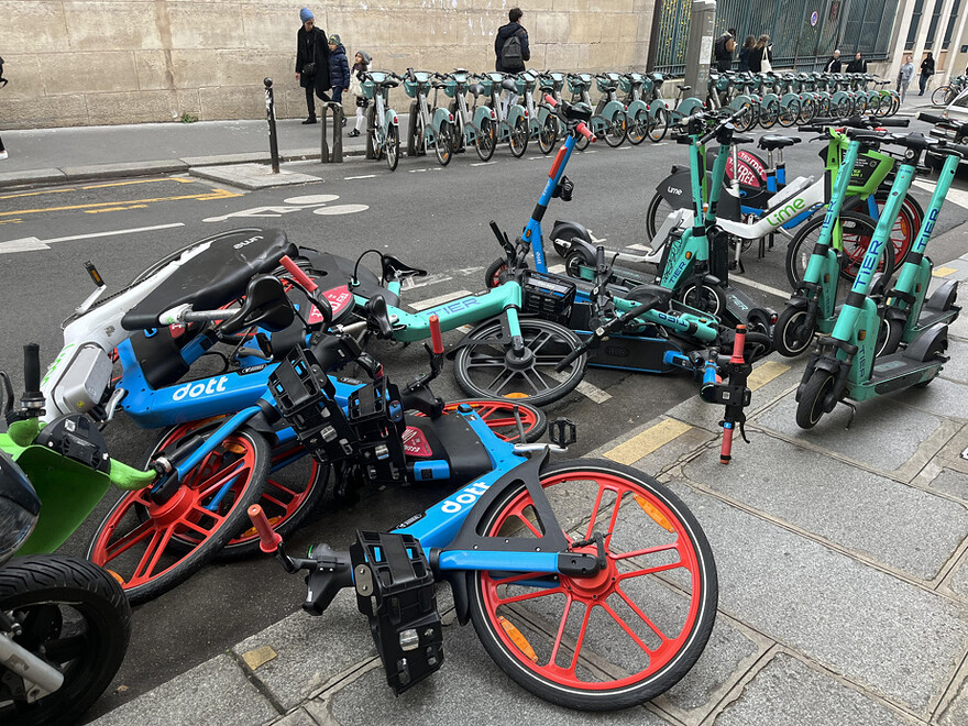 Opinion impopulaire : ça ne me dérange pas tellement que les trottinettes électriques ne soient pas laissées dans les emplacements prévus.