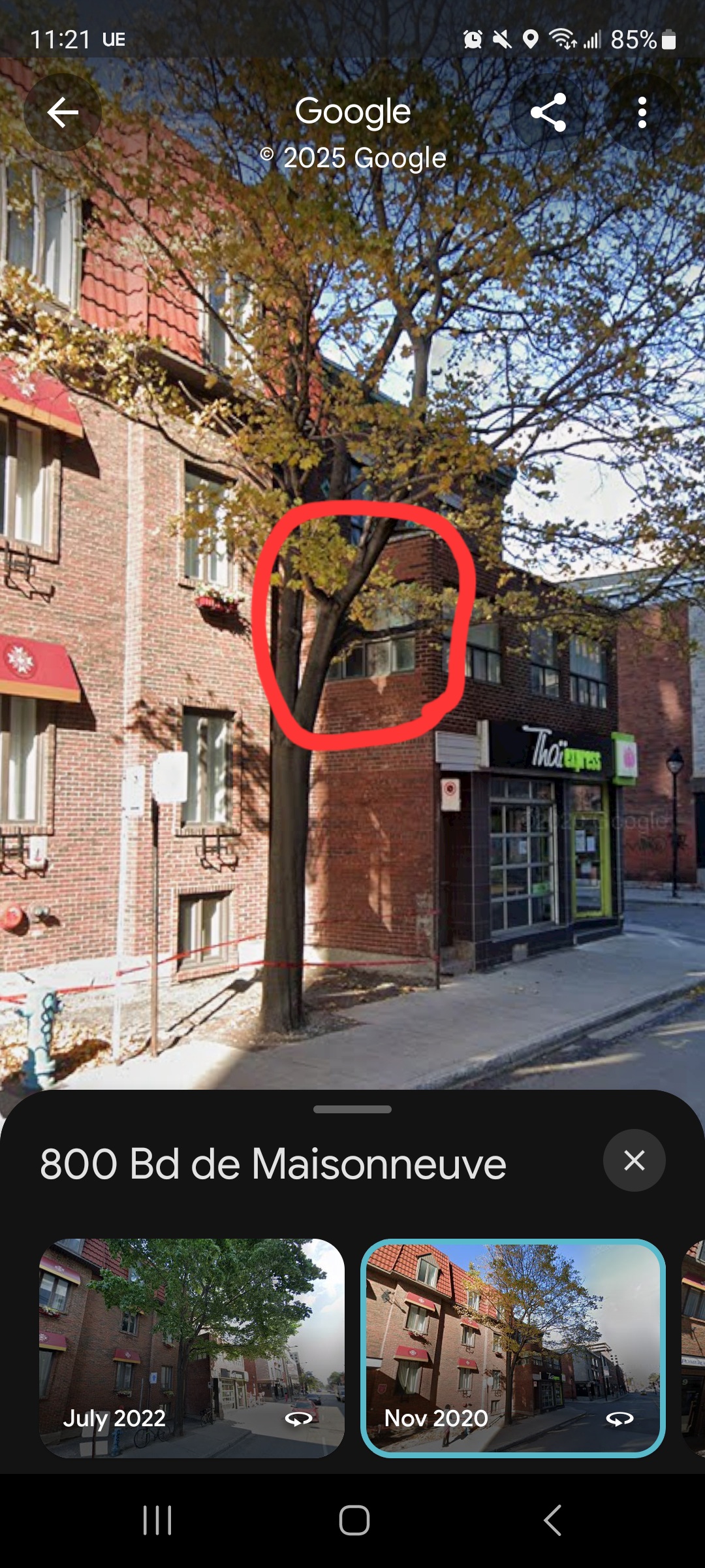 Ça ne me semble pas légal, puisque la fenêtre continue derrière le nouveau mur de béton, ce qui est prohibé selon le code du bâtiment. C’est la fenêtre qui n’était pas légale dès le départ?