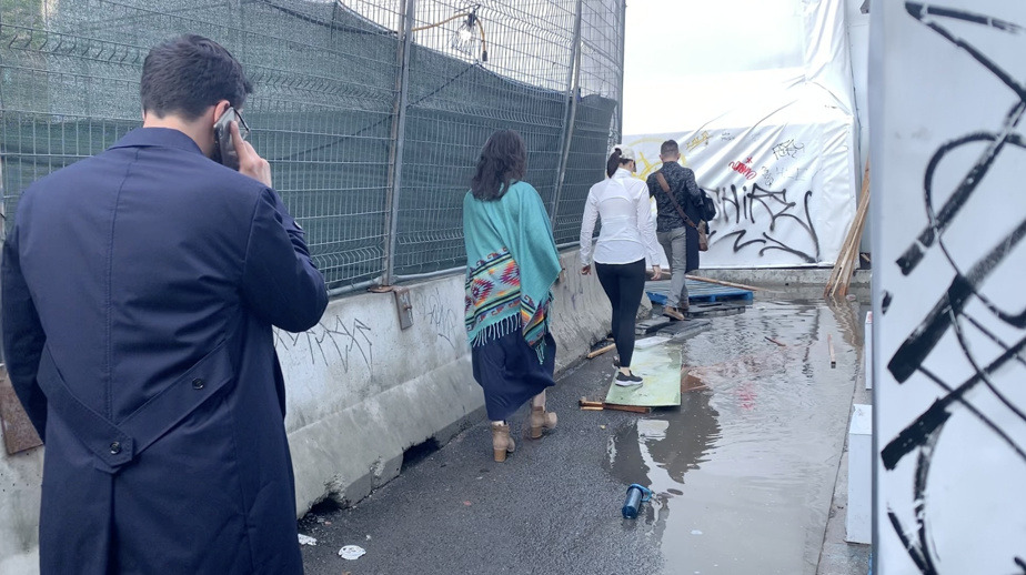 Derrière elle, une dizaine de passants tentaient l’un après l’autre de traverser le passage sans piler dans l’épaisse flaque qui recouvre le sol. Des matériaux de construction déposés çà et là dans l’eau leur servaient de marchepieds.