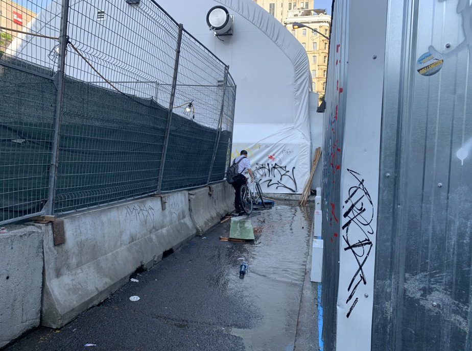 Je ne sais pas si c’est en réponse à cet article ou une simple coïncidence, mais aujourd’hui le passage avait été agrandi - beaucoup plus d’espace au nord de la caserne temporaire!