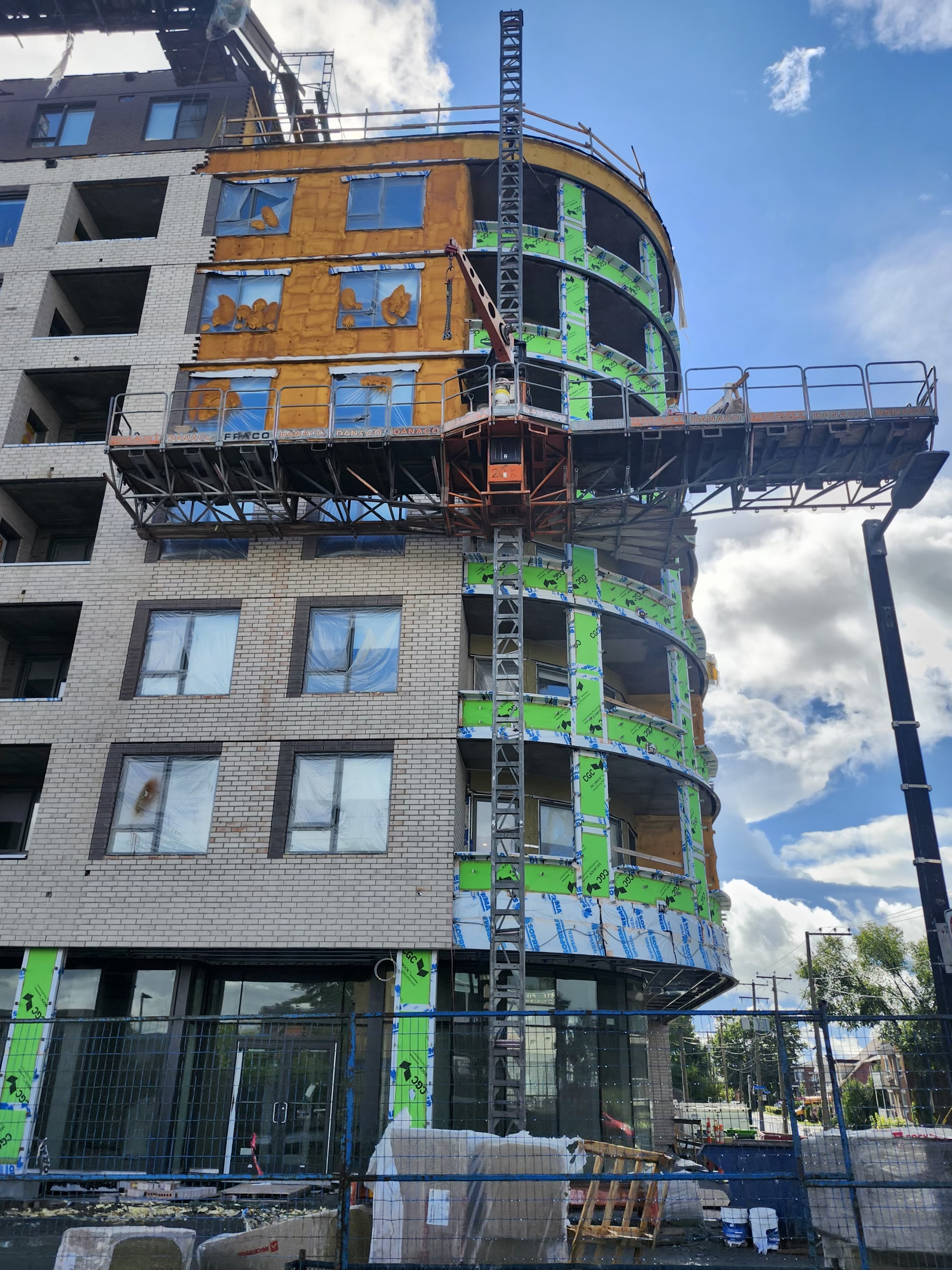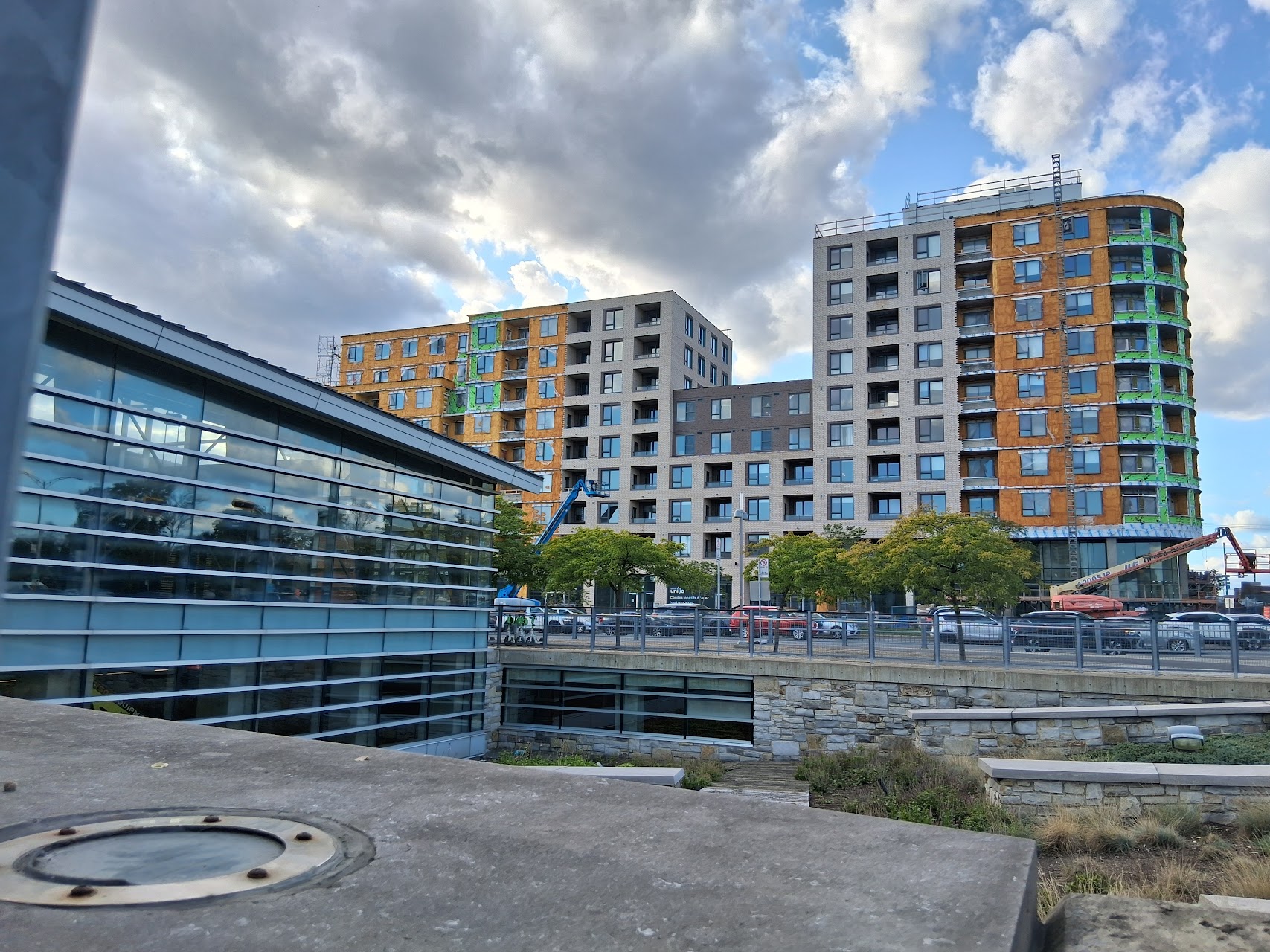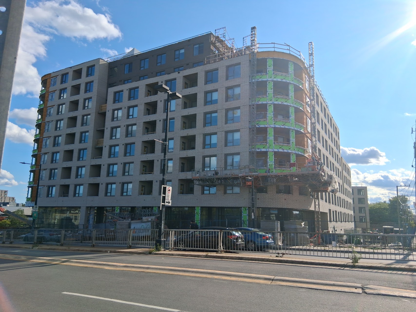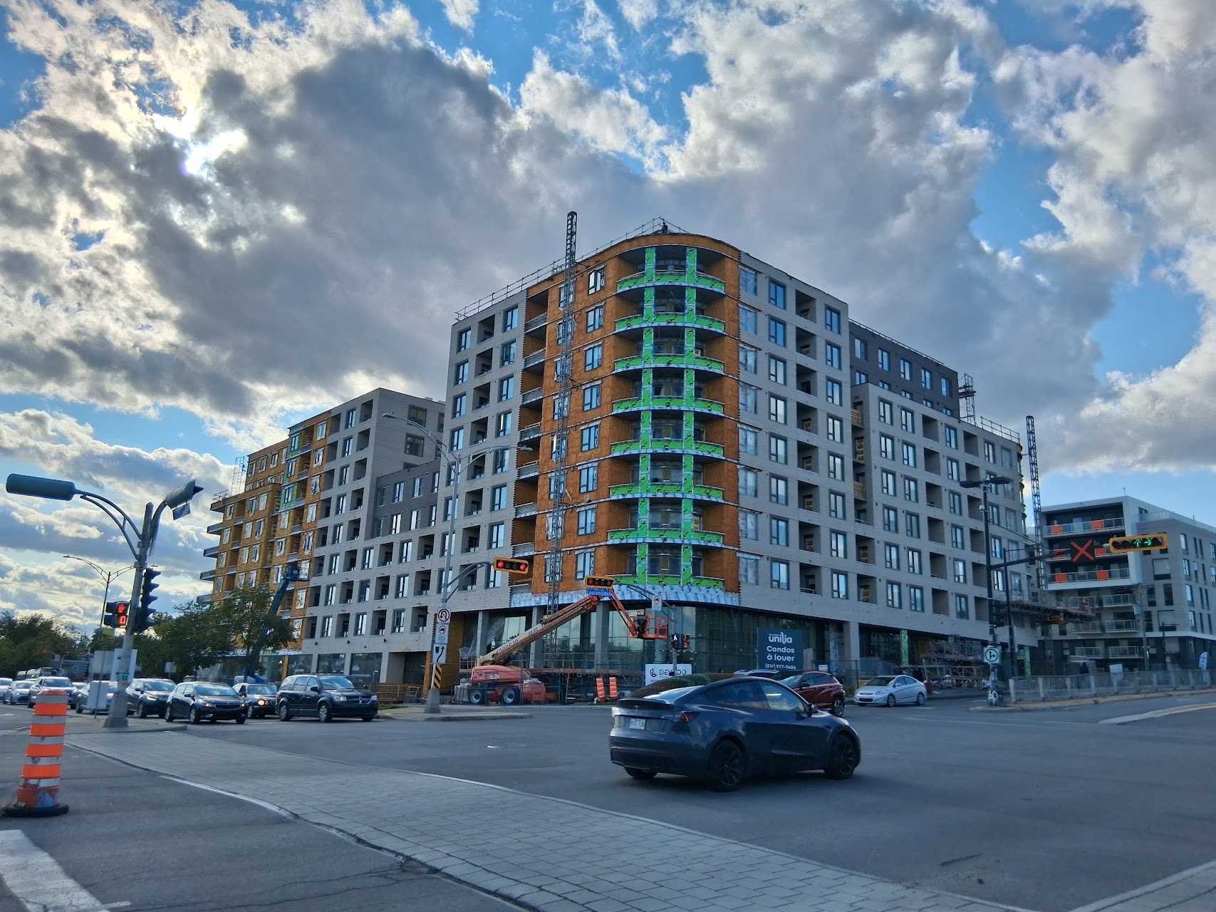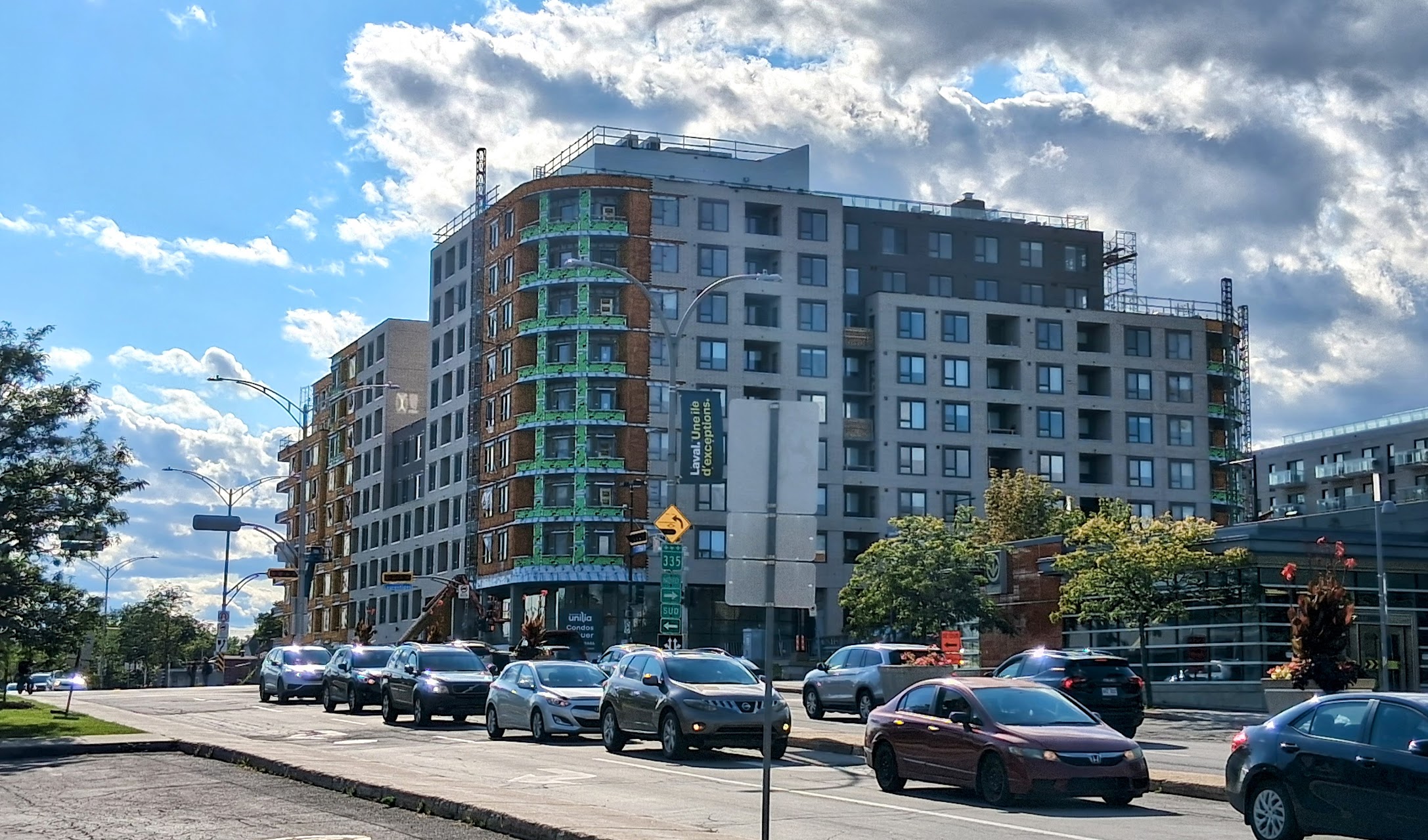 Franchement quand j’ai vu les premières images du projet, j’étais vraiment déçu du look, surtout de la brique. Maintenant que c’est bien avancé et après avoir passer et vue le bâtiment pratiquement quotidiennement, je commence à bien aimer! Selon moi, la couleur se fond bien au terminus derrière et au look du quartier.