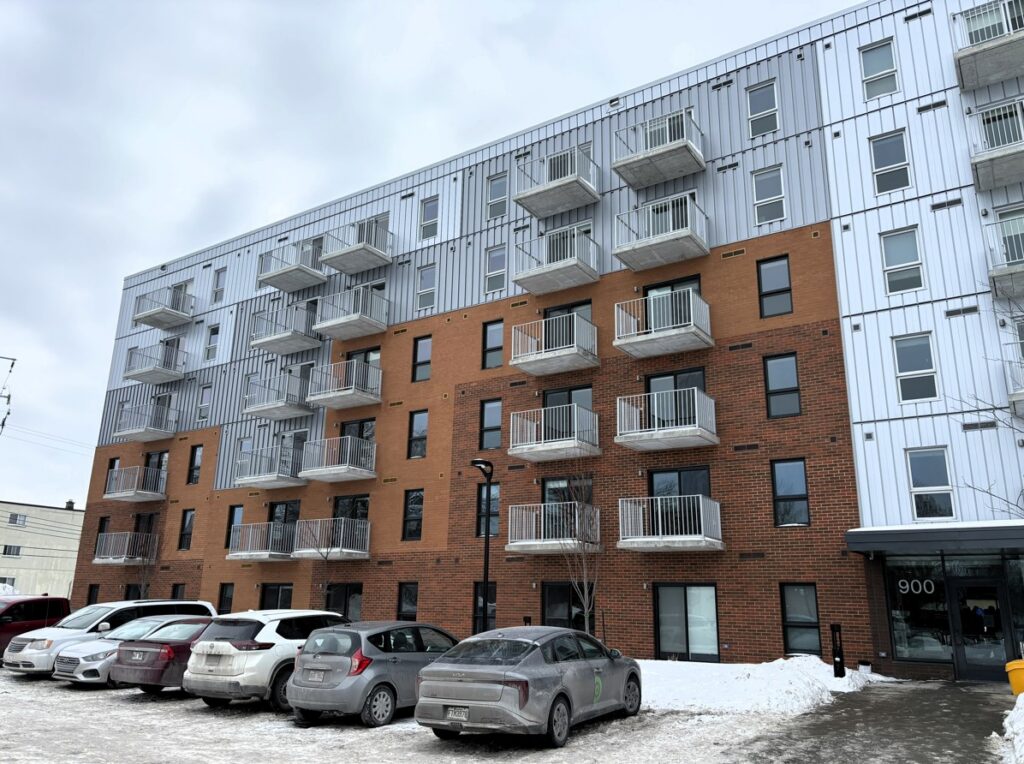 Situé au 900, allée Thérèse-Dallaire-Laplante, l’immeuble s’inscrit dans la première phase du projet de Mission Unitaînés, qui visait la construction de 1100 logements abordables en deux ans dans 11 villes.