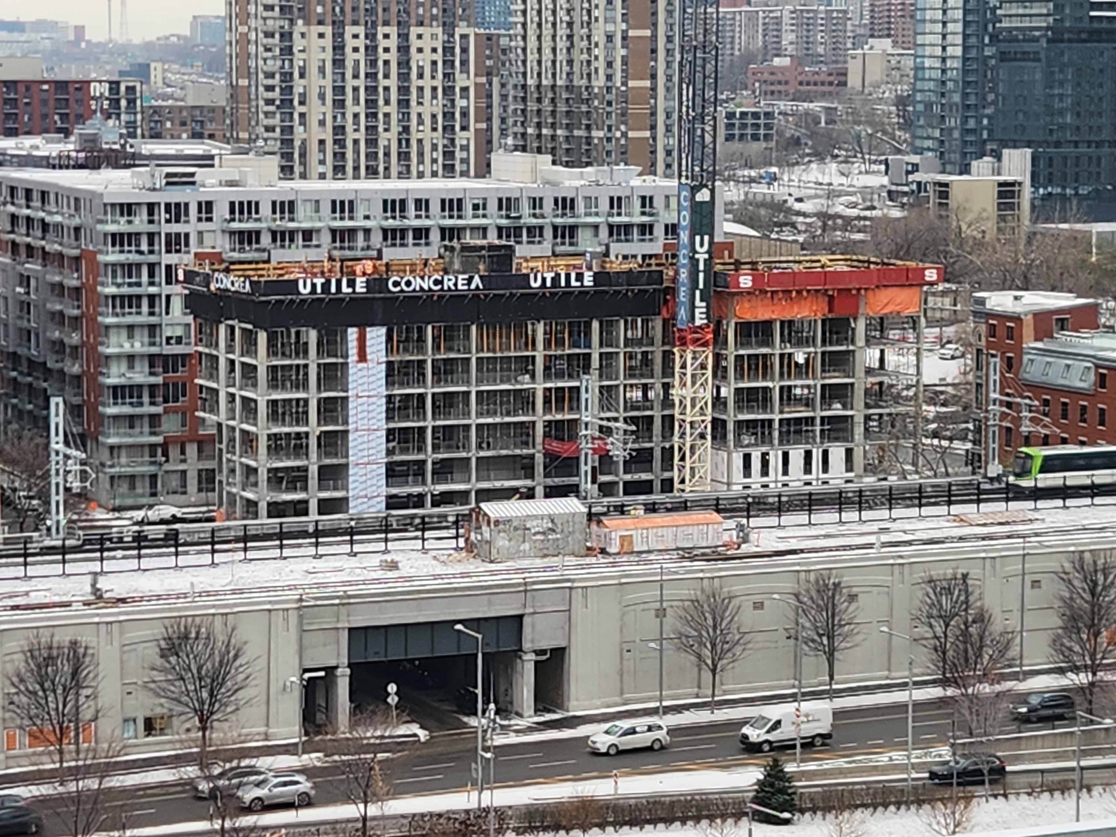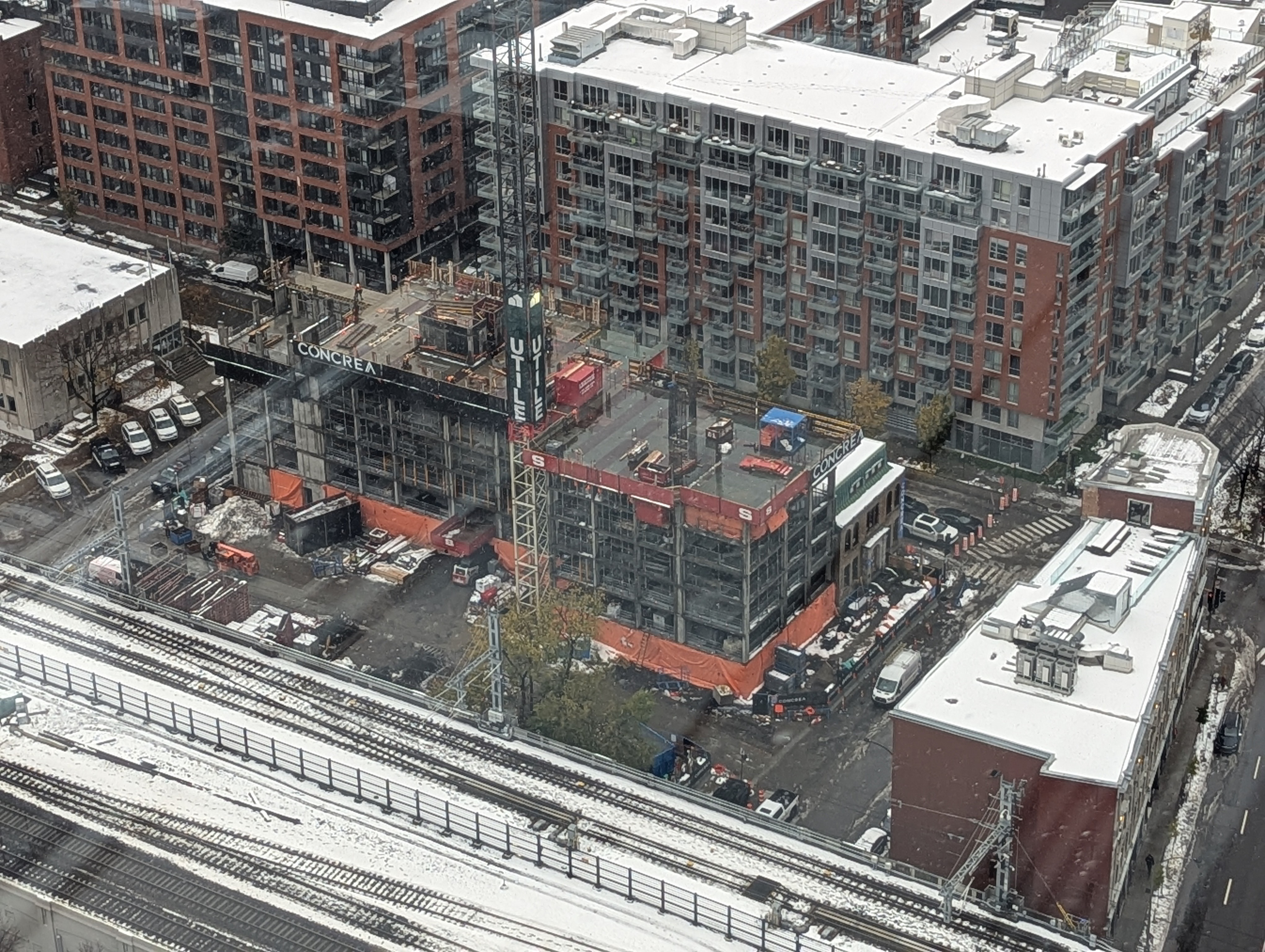 L’édifice commence visuellement à se détacher de la structure ferroviaire.