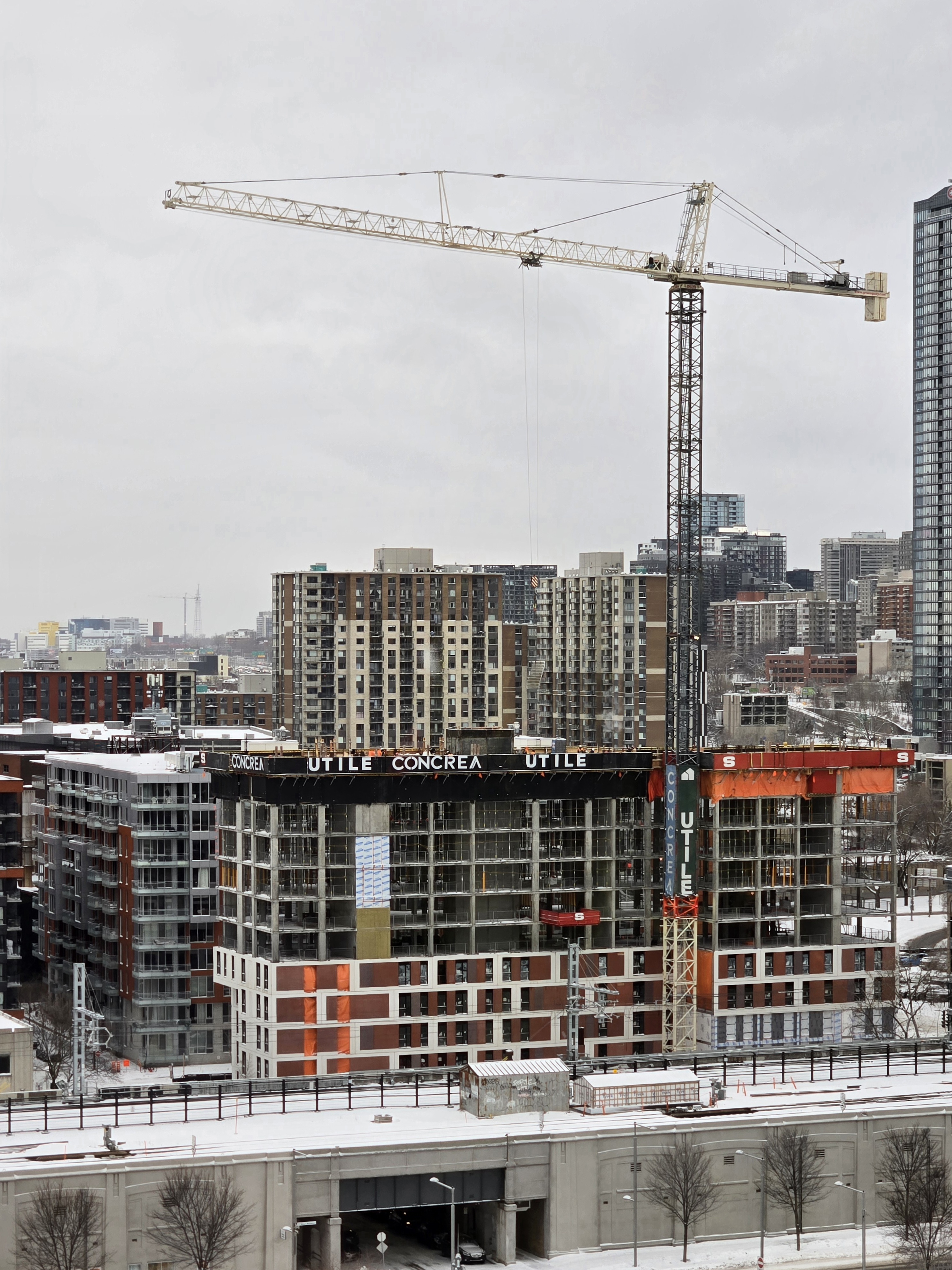 Le 9e a maintenant son toit complet. Il sera intéressant de voir si un nouveau projet verra le jour sur l’ancien poste de police, juste à gauche. La rue de l’inspecteur est maintenant barrée, les premiers éléments de béton préfabriqués devraient donc arriver sous peu.