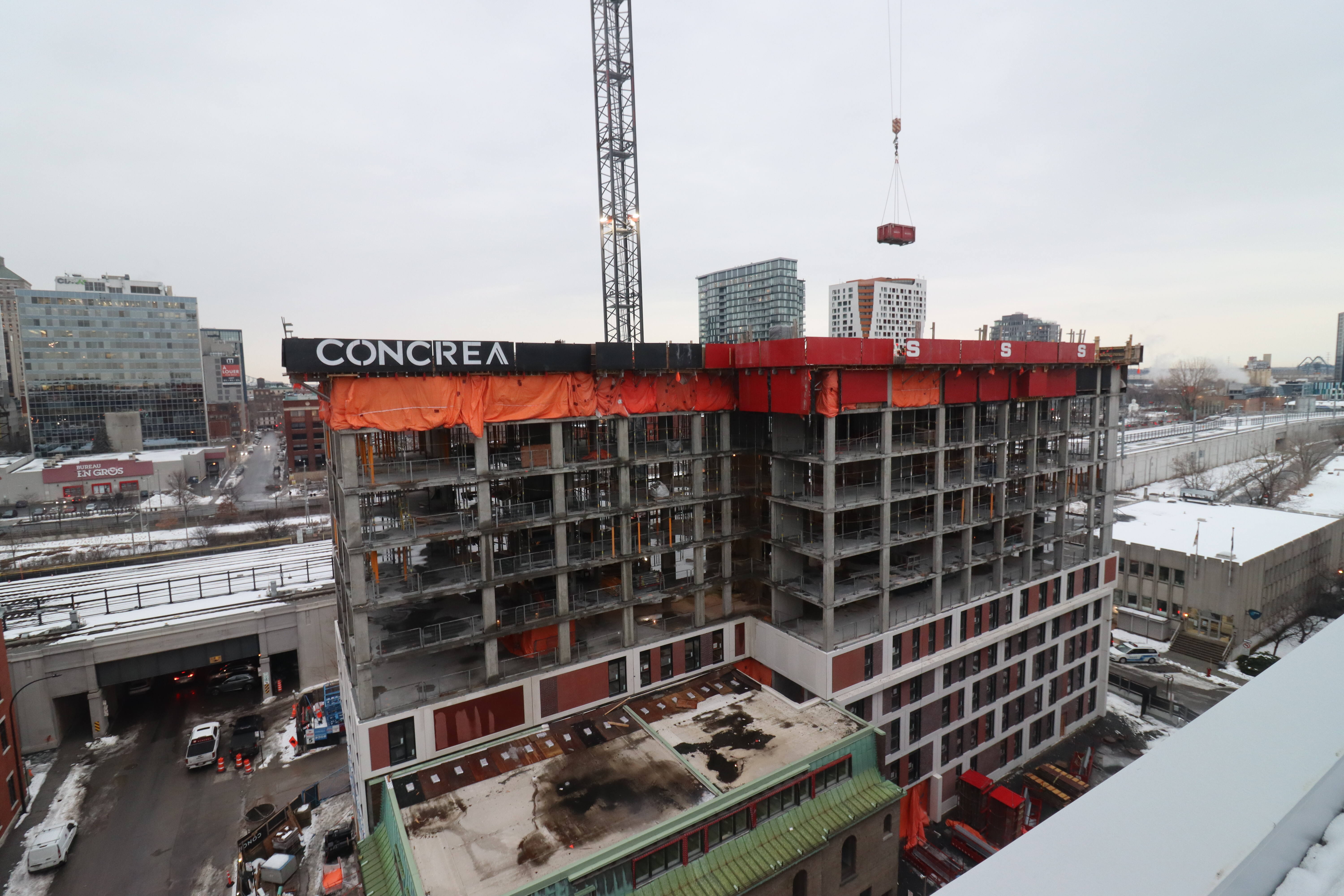 On finalise le plafond du 9e étage. Bientôt à la hauteur du Lowney en face.