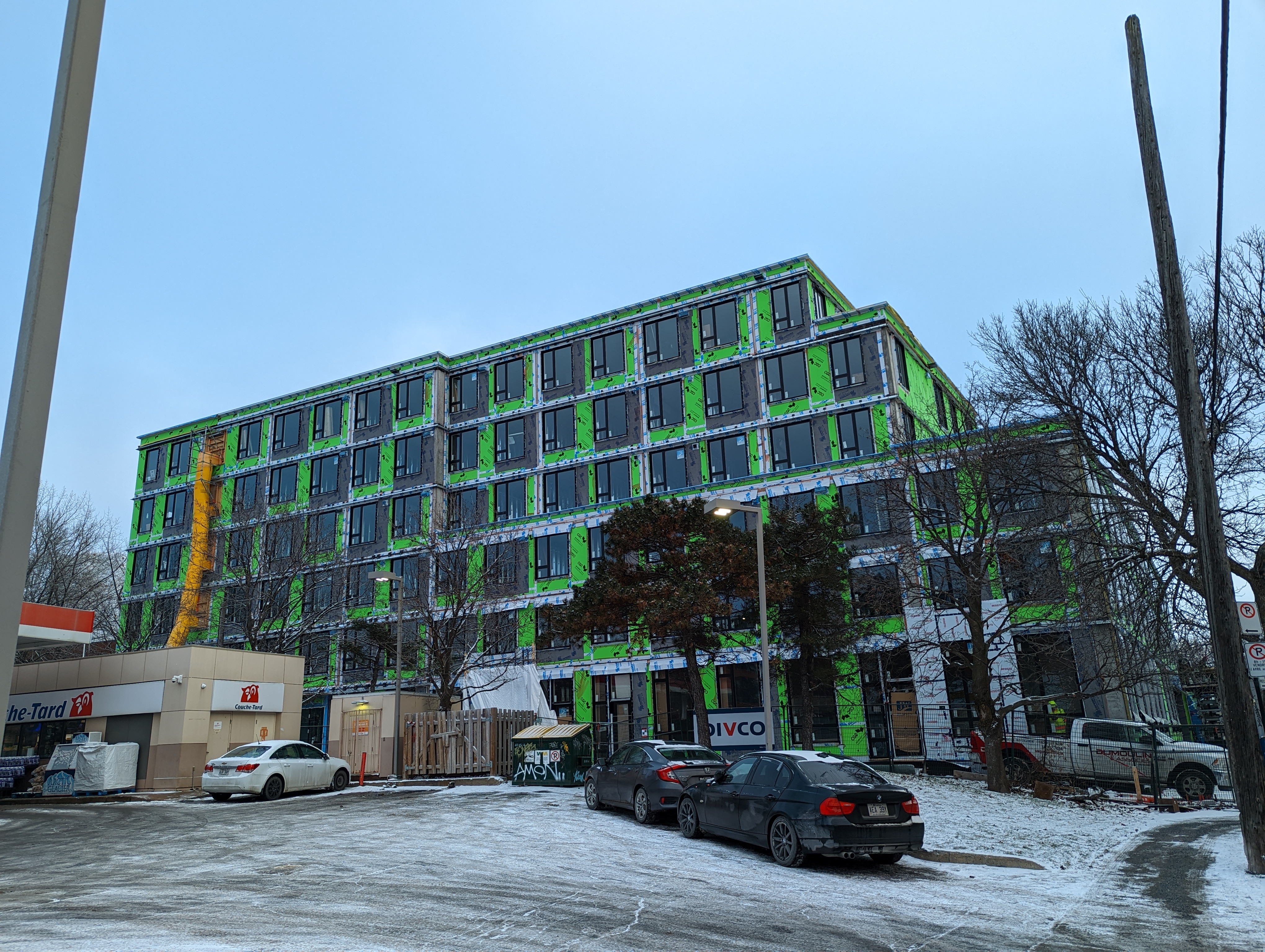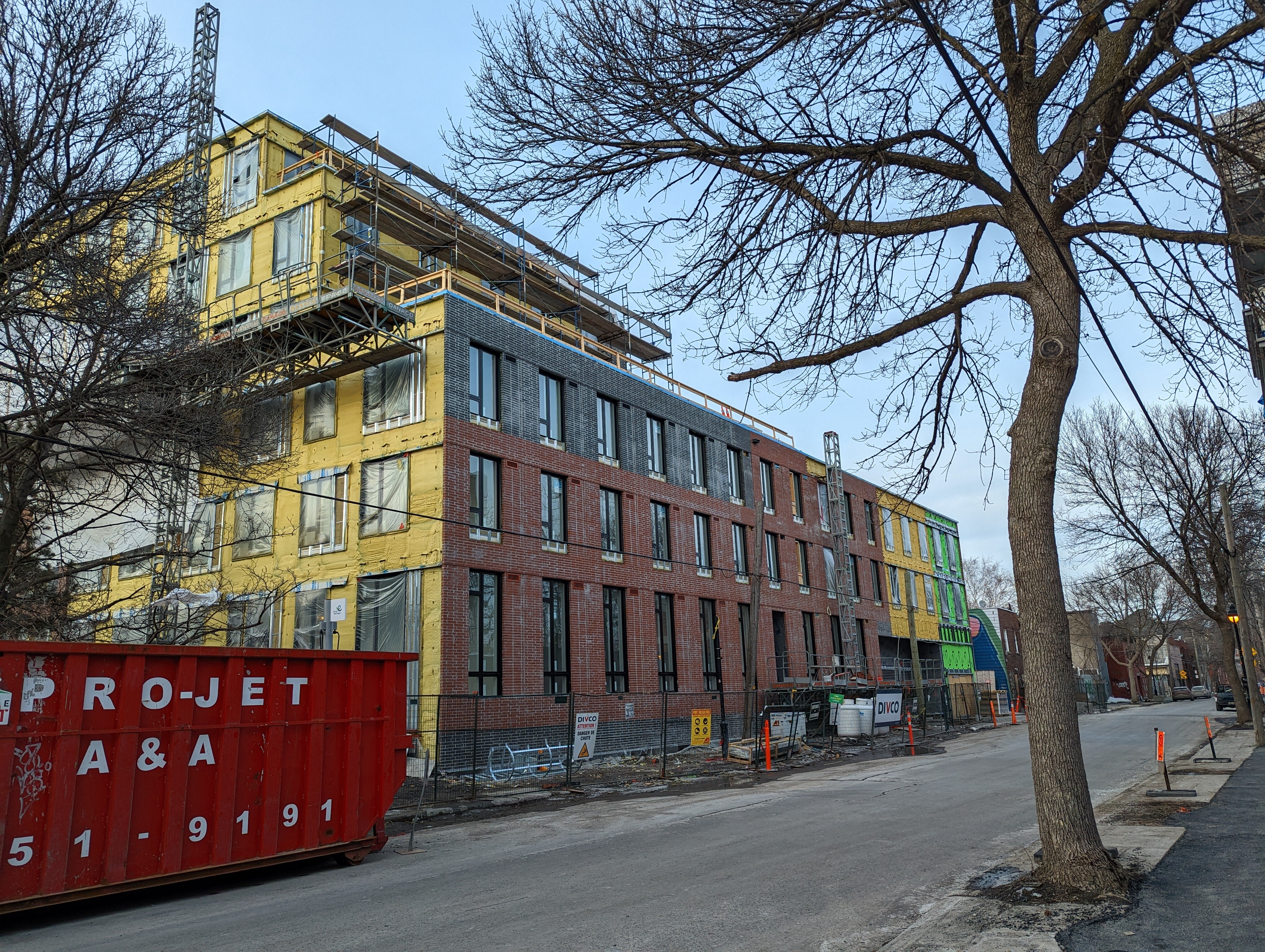 J’aimerais bien avoir un immeuble avec un revêtement aussi coloré que celui-ci. Il me semble que cela ajouterait un peu de gaieté dans le décors surtout entre novembre et avril.