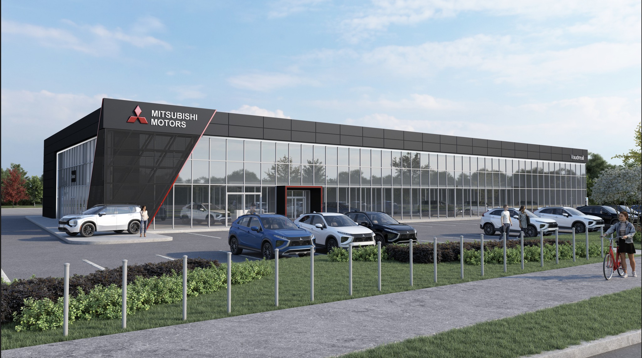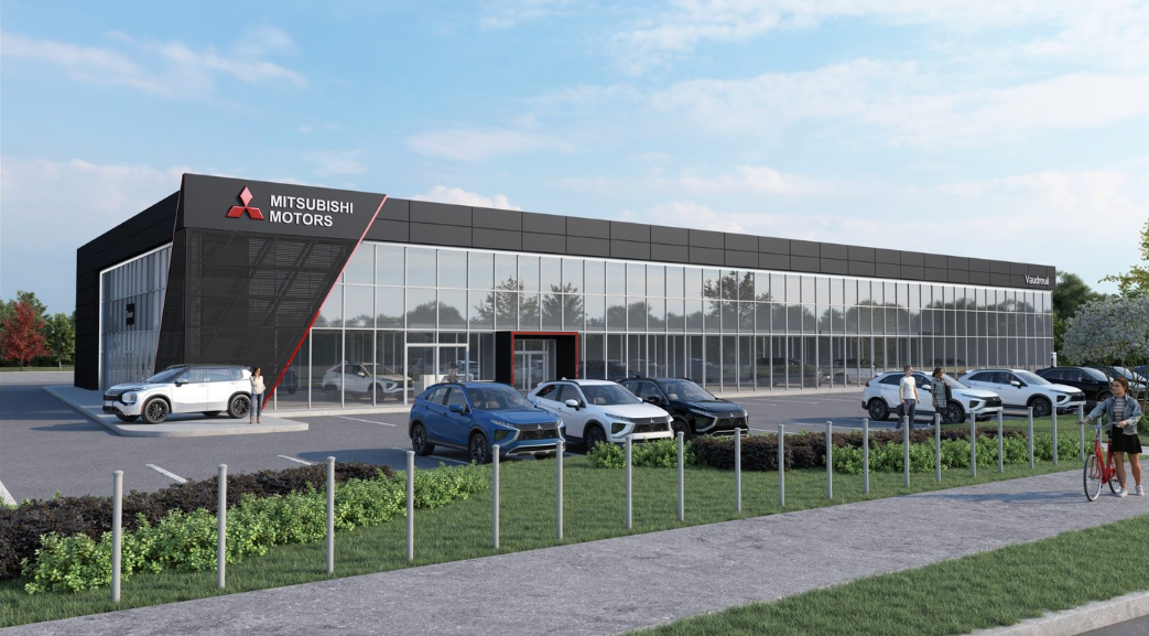 Projet commercial de construction d’un concessionaire Mitsubishi par le Groupe Losier.