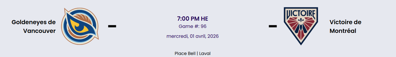 | Goldeneyes de Vancouver | Victoire de Montréal | |