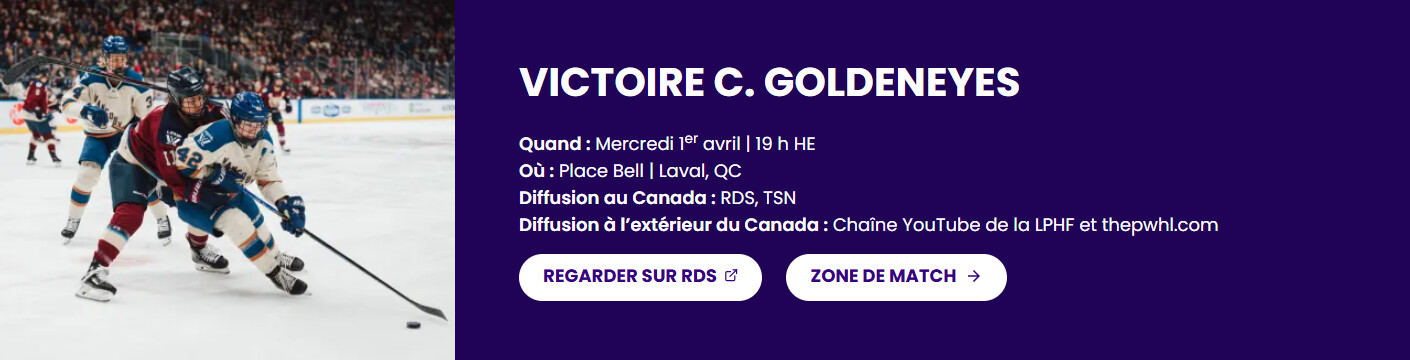 LAVAL, QC (1er avril 2026) – La Victoire de Montréal est devenue la deuxième équipe à confirmer sa place dans les Séries éliminatoires de la Coupe Walter 2026 de la LPHF, portée par un sixième jeu blanc cette saison d’Ann-Renée Desbiens et deux buts de Hayley Scamurra, blanchissant les Goldeneyes de Vancouver 3-0 devant 9176 spectateurs et spectatrices à la Place Bell mercredi soir. La performance de deux buts de Scamurra comprenait le but gagnant, tandis que Laura Stacey et Skylar Irving ont chacune récolté deux mentions d’aide pour mener l’offensive de la Victoire. Alors que le match semblait se diriger vers la prolongation, toujours sans but à mi-chemin en troisième période, Scamurra a complété une séquence de jeu entre Irving et Stacey en trouvant de l’espace dans l’enclave pour marquer sur un tir sur réception, son quatrième de la saison.