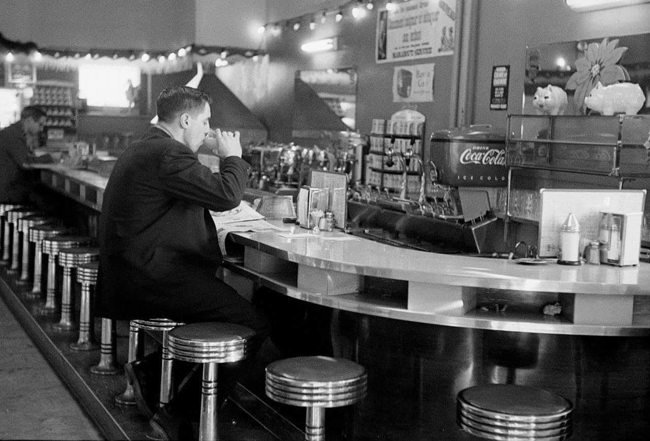 Jean Béliveau dans un deli au début des années 1950.