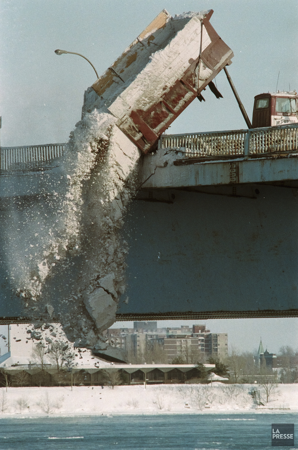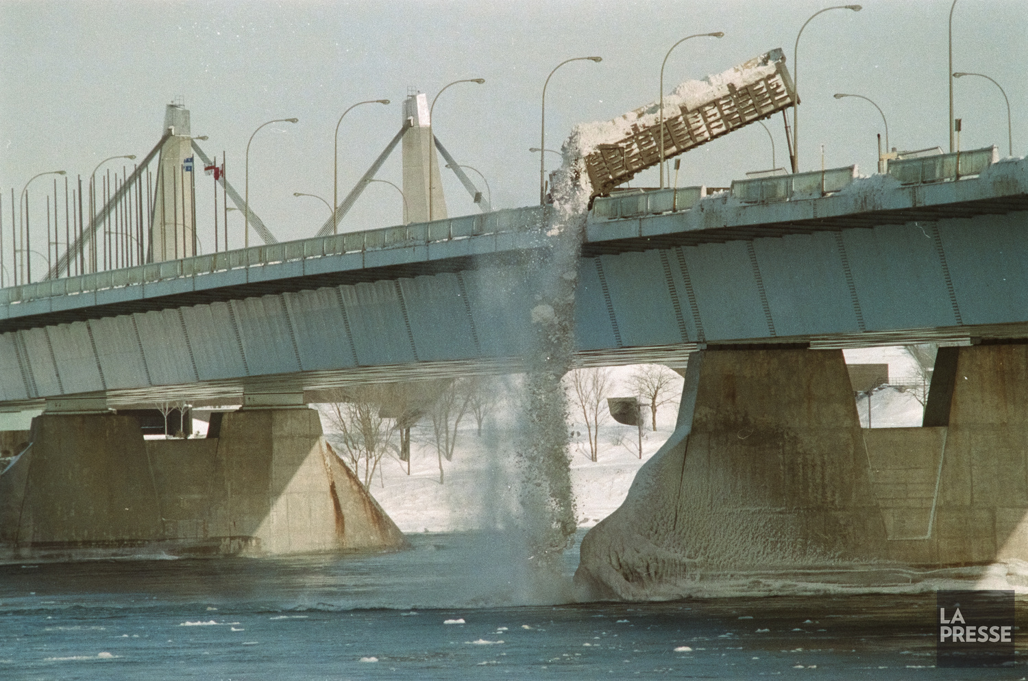 À l’epoque où la Ville de Montréal jetait les neiges usées par dessus le Pont de la Concorde, ici le 17 février 1993.