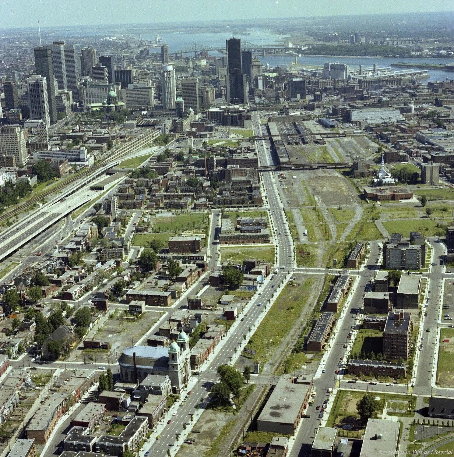 Petite précision, les espaces vacants correspondent à l’ancienne gare de triage, puis vers l’ouest où les voies ferrées traversaient les différents quartiers. La station Lionel-Groulx a d’ailleurs été construites sur les terrains de la voie ferrée. À l’époque on libérait de précieux terrains constructibles qui ont complètement transformé la physionomie de la ville dans ce secteur.
