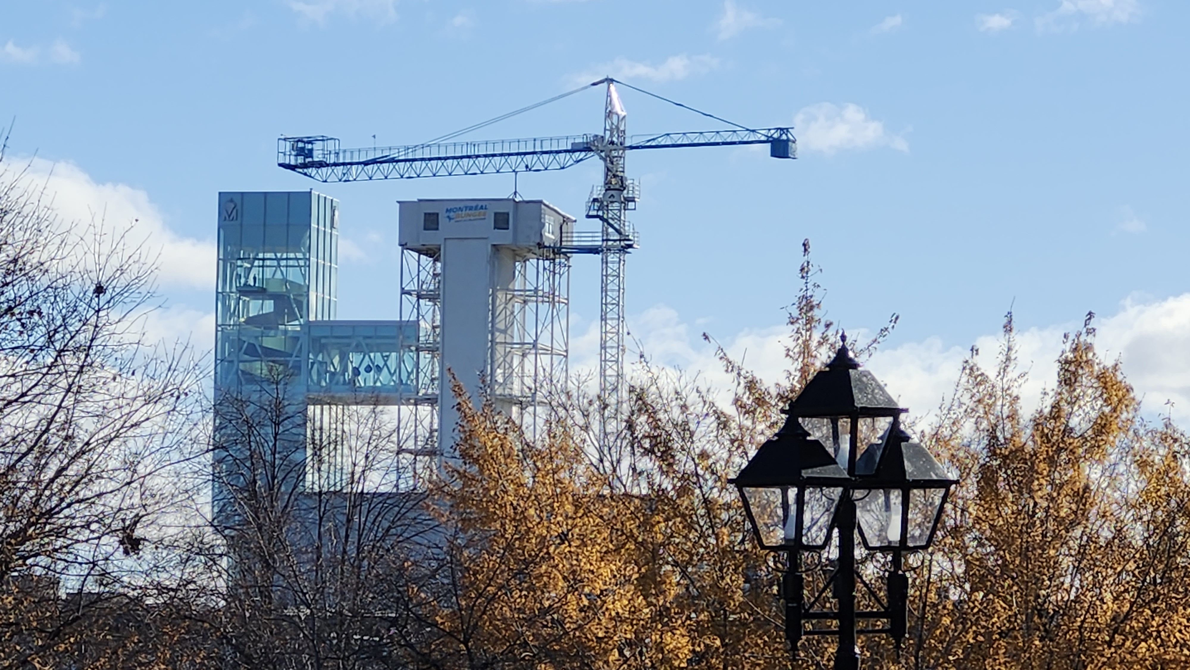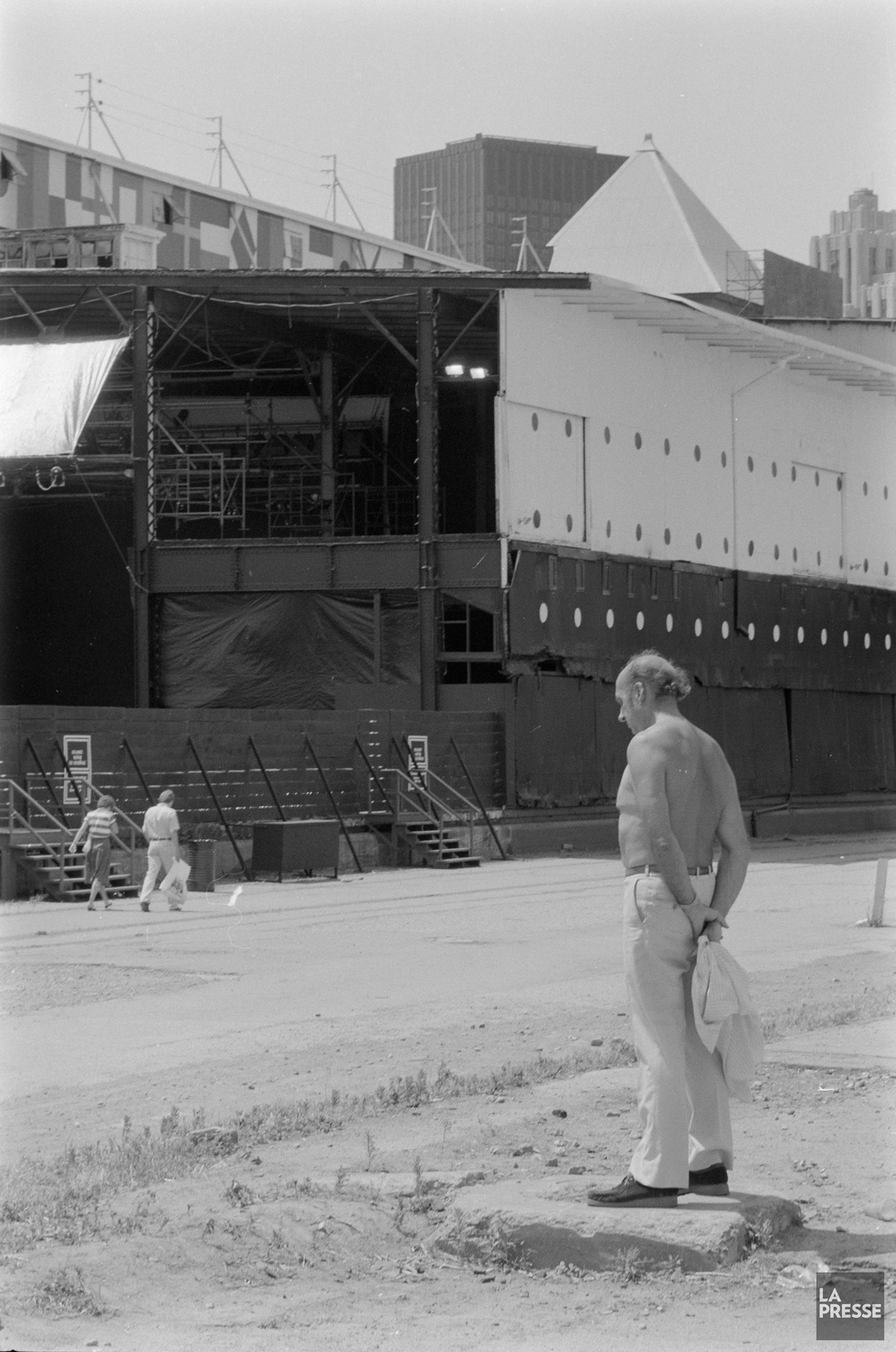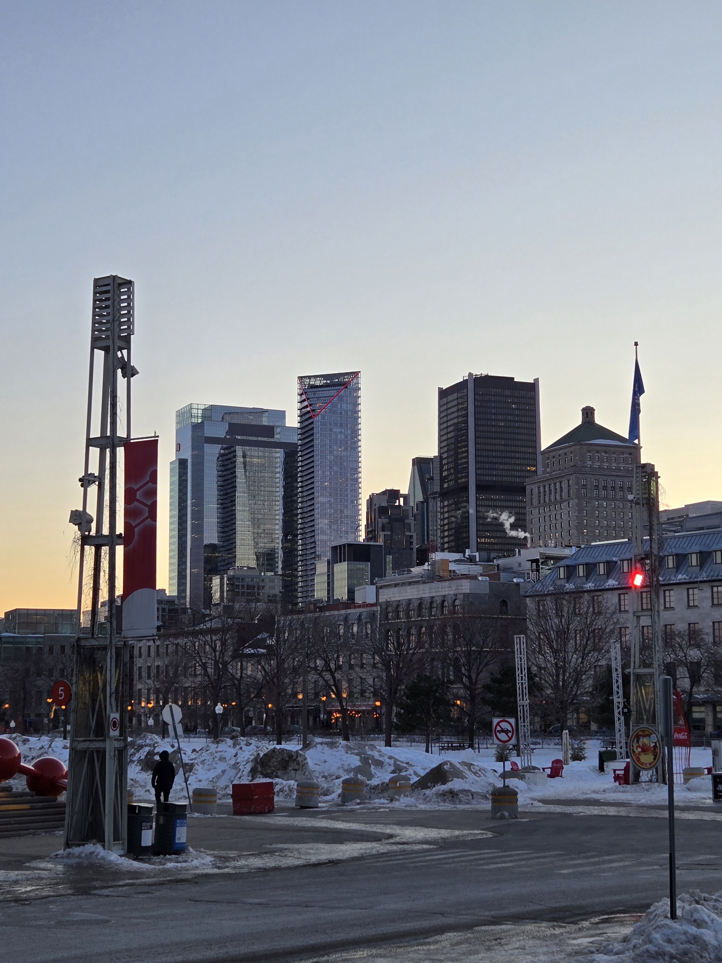 Le quai de l’Horloge le 9 mai 1991, avec l’aménagement du bassin Bonsecours en arrière-plan en prévision du 350e de Montréal et la construction du 1000 et du IBM-Marathon.