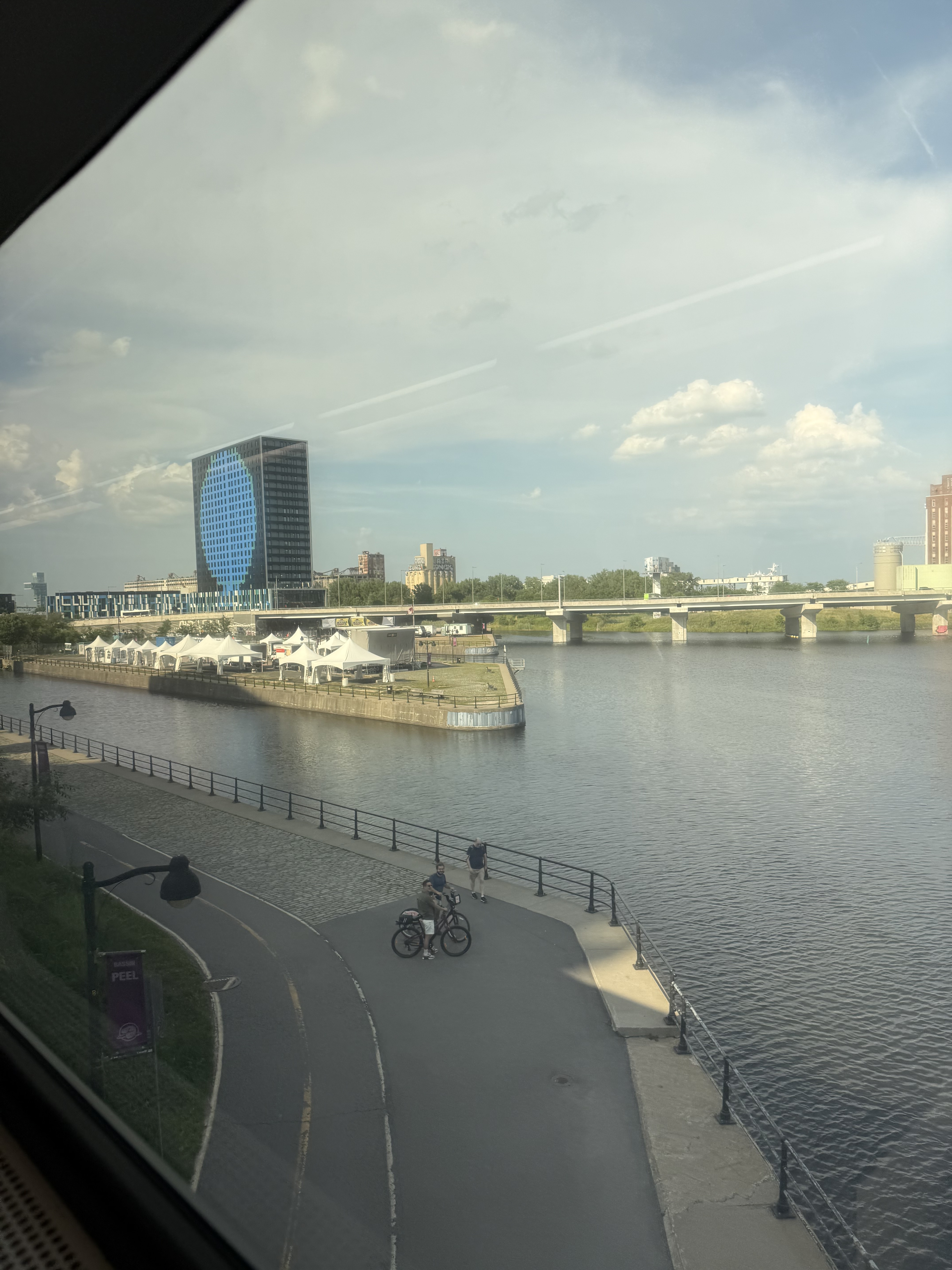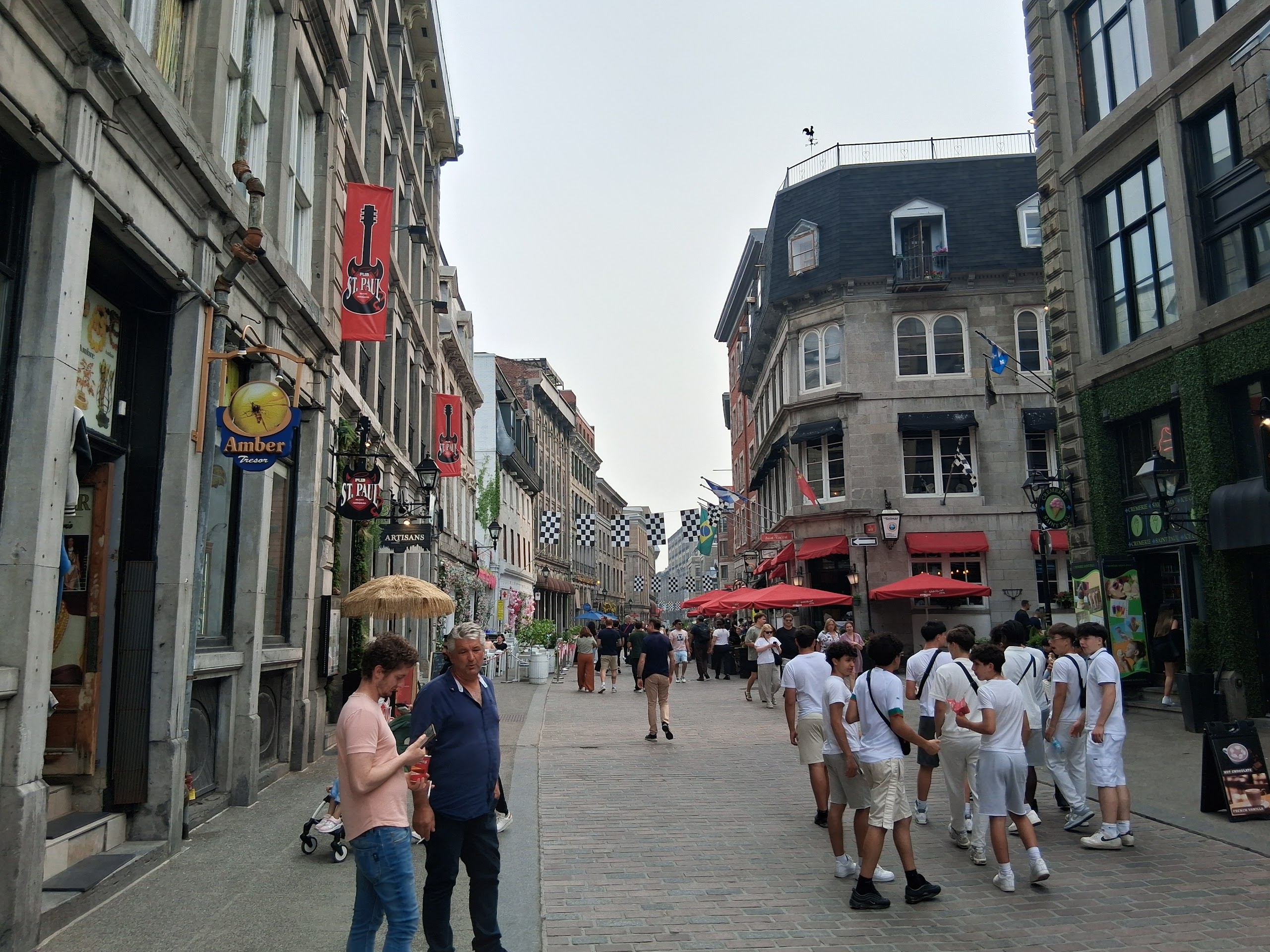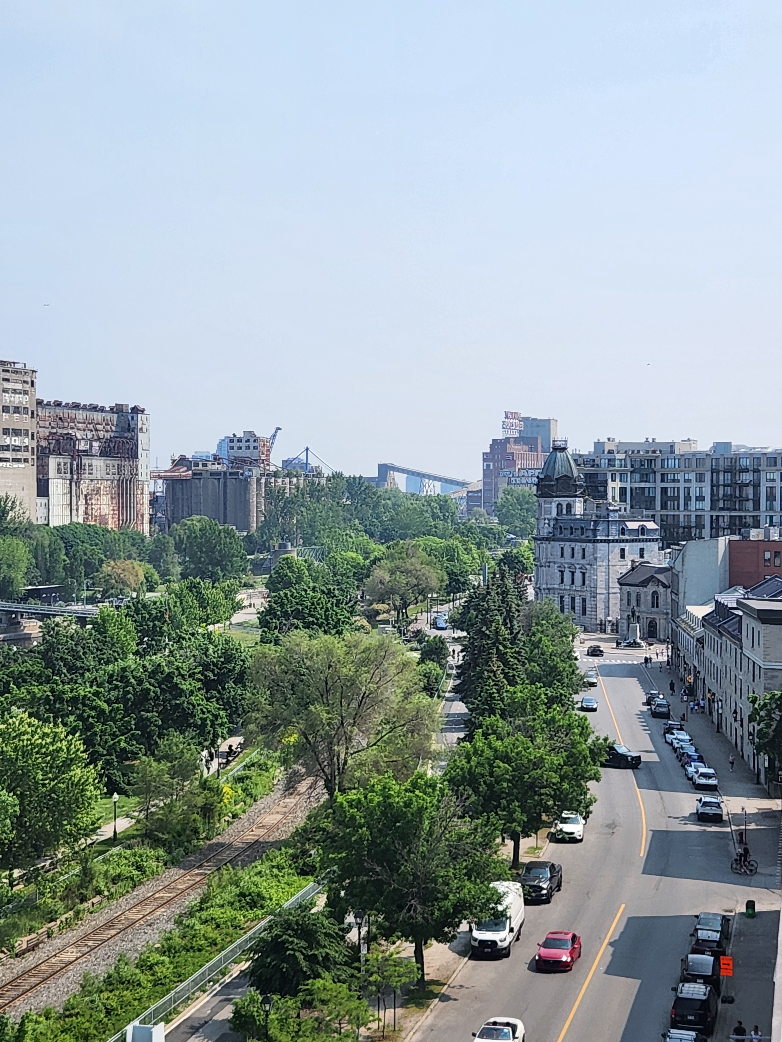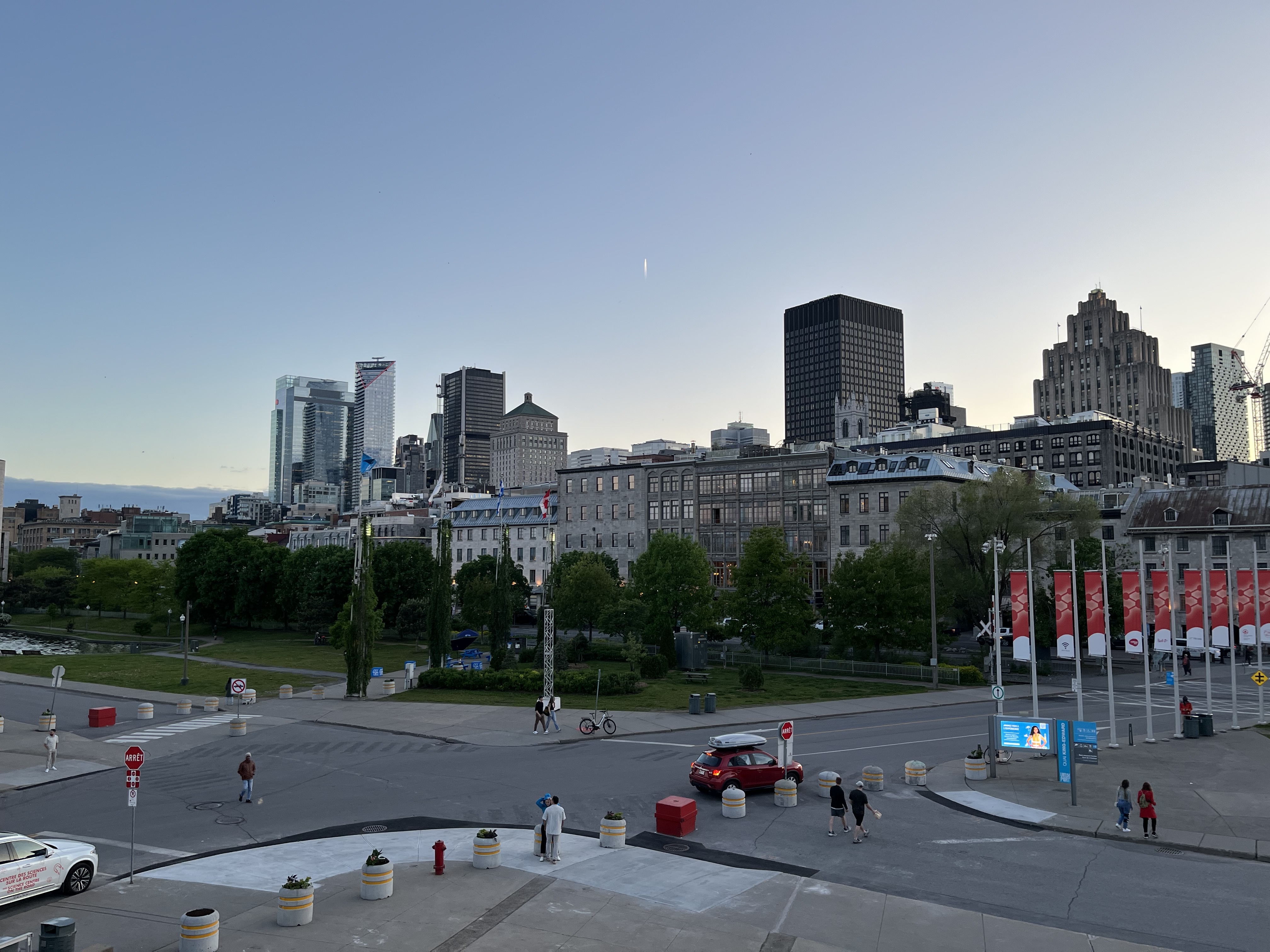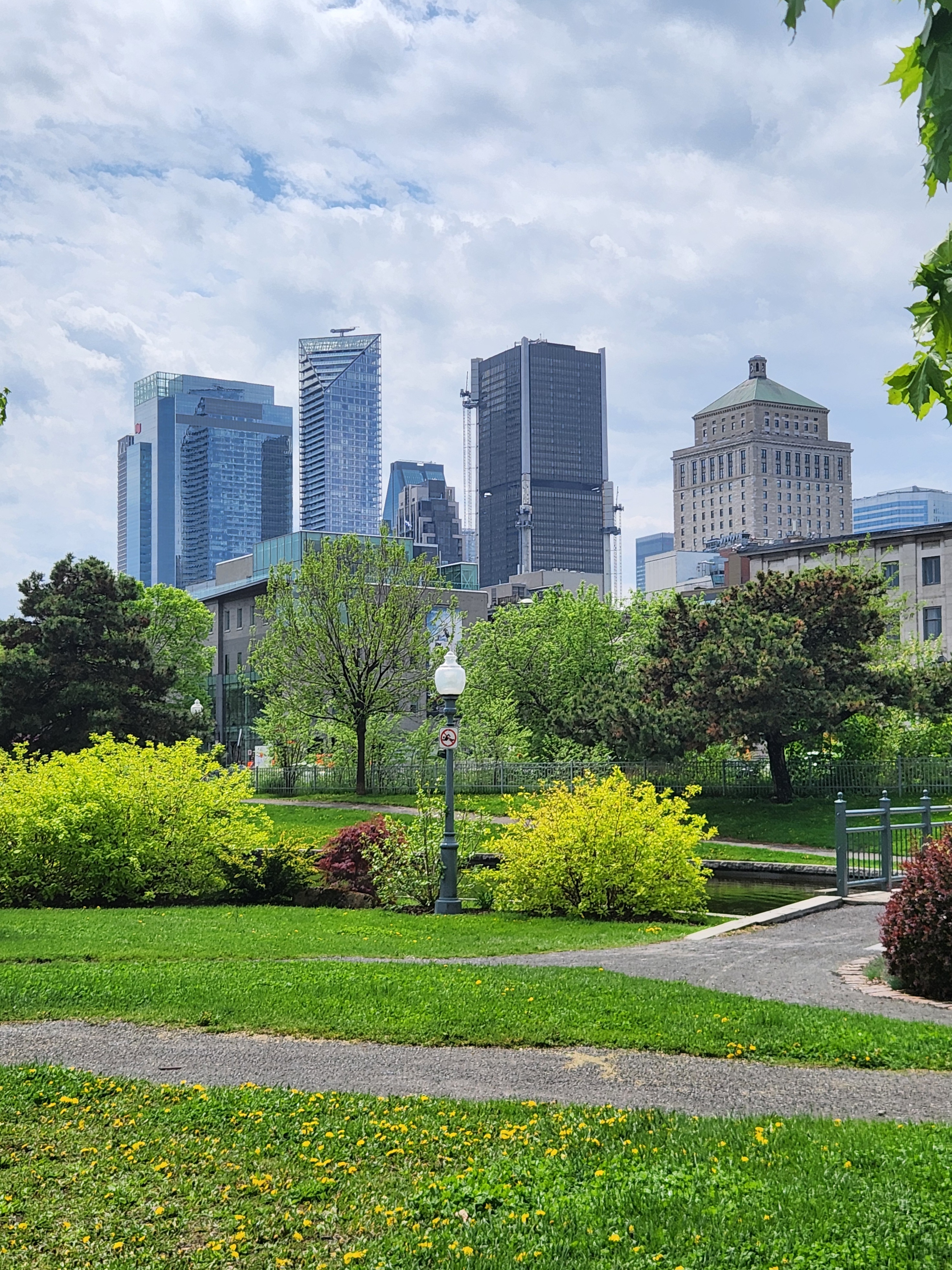On achève la peinture des rambardes le long du boardwalk. Beaucoup de bollards anti-béliers remplis de fleurs, magnifiques. Ça fait changement des blocs de béton disséminés dans le Vieux-Montréal.