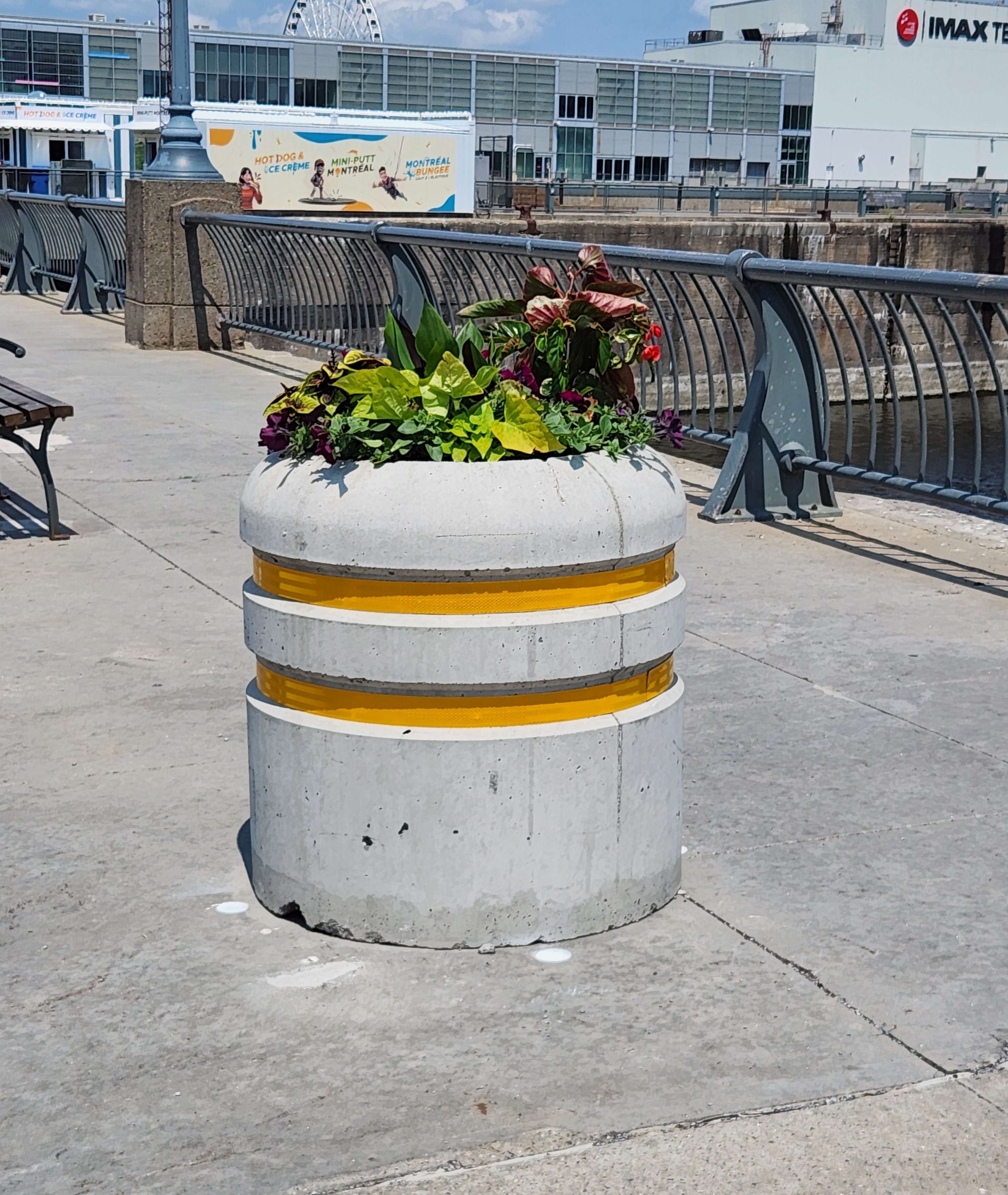 Des bollards agréables à l’oeil, résistant de par leur béton brut et agrémenté de fleurs sur le dessus. La Ville de Montréal devrait prendre des notes pour ses bollards plutôt disgracieux devant la Place Jacques-Cartier.
