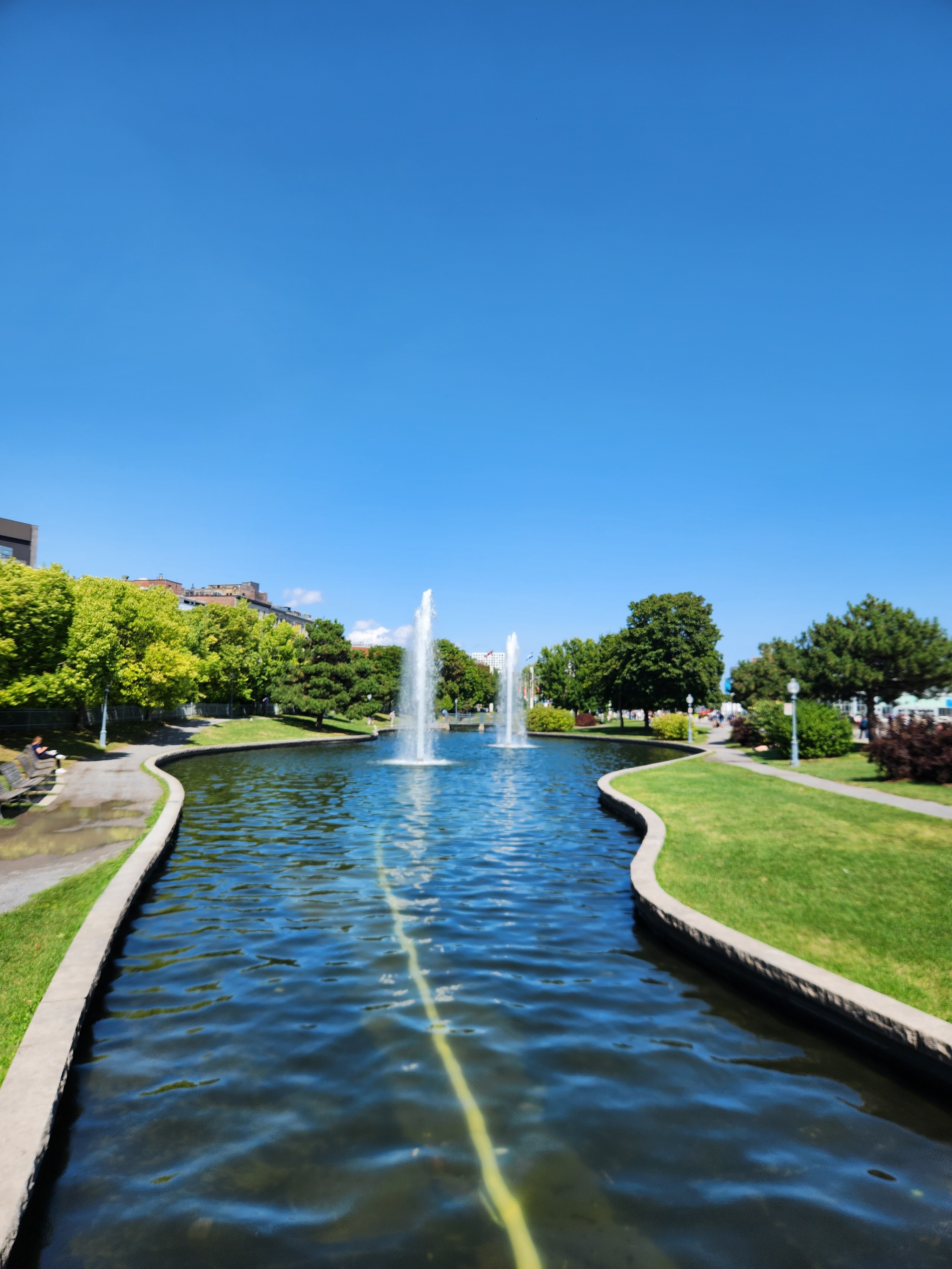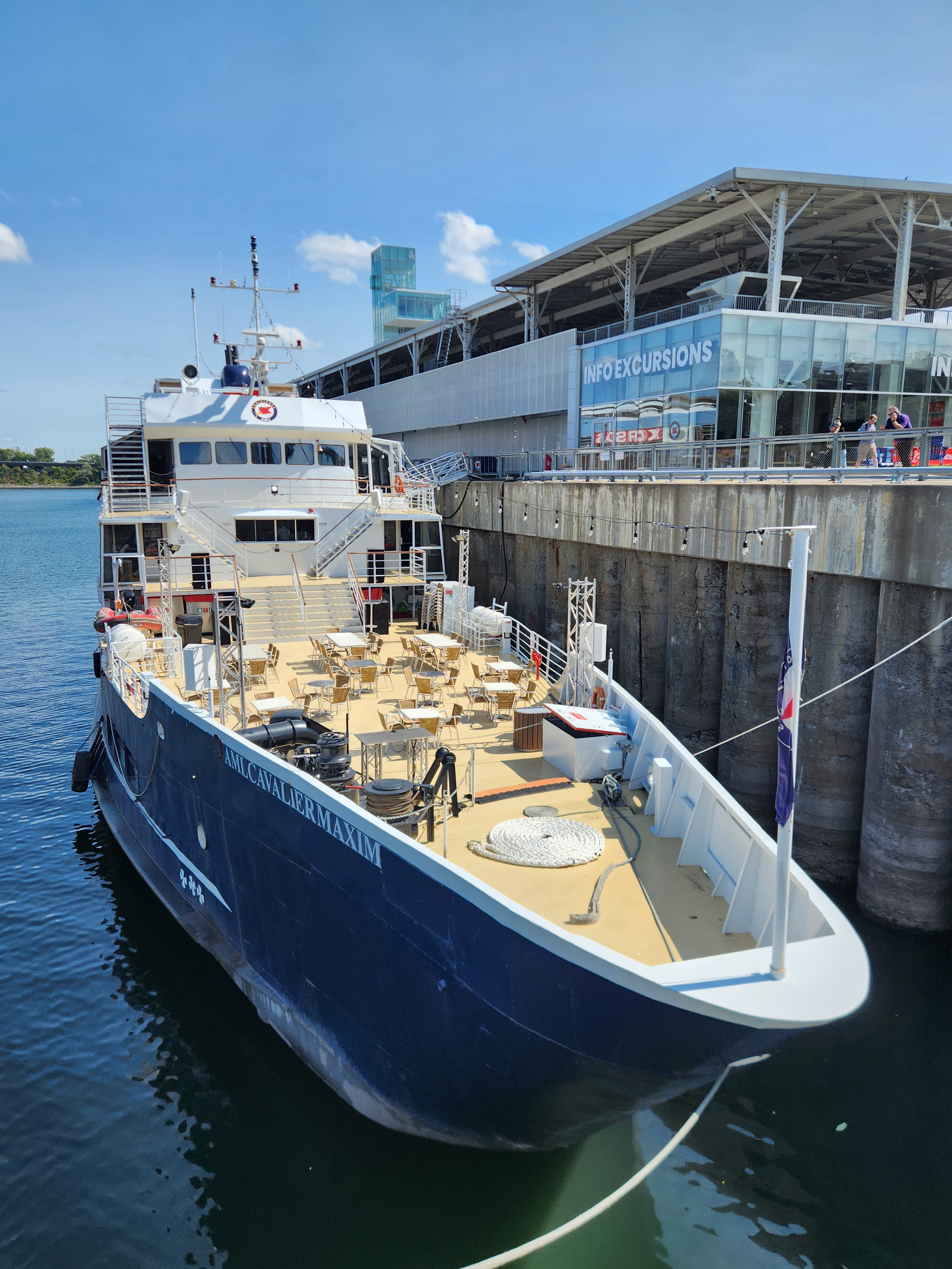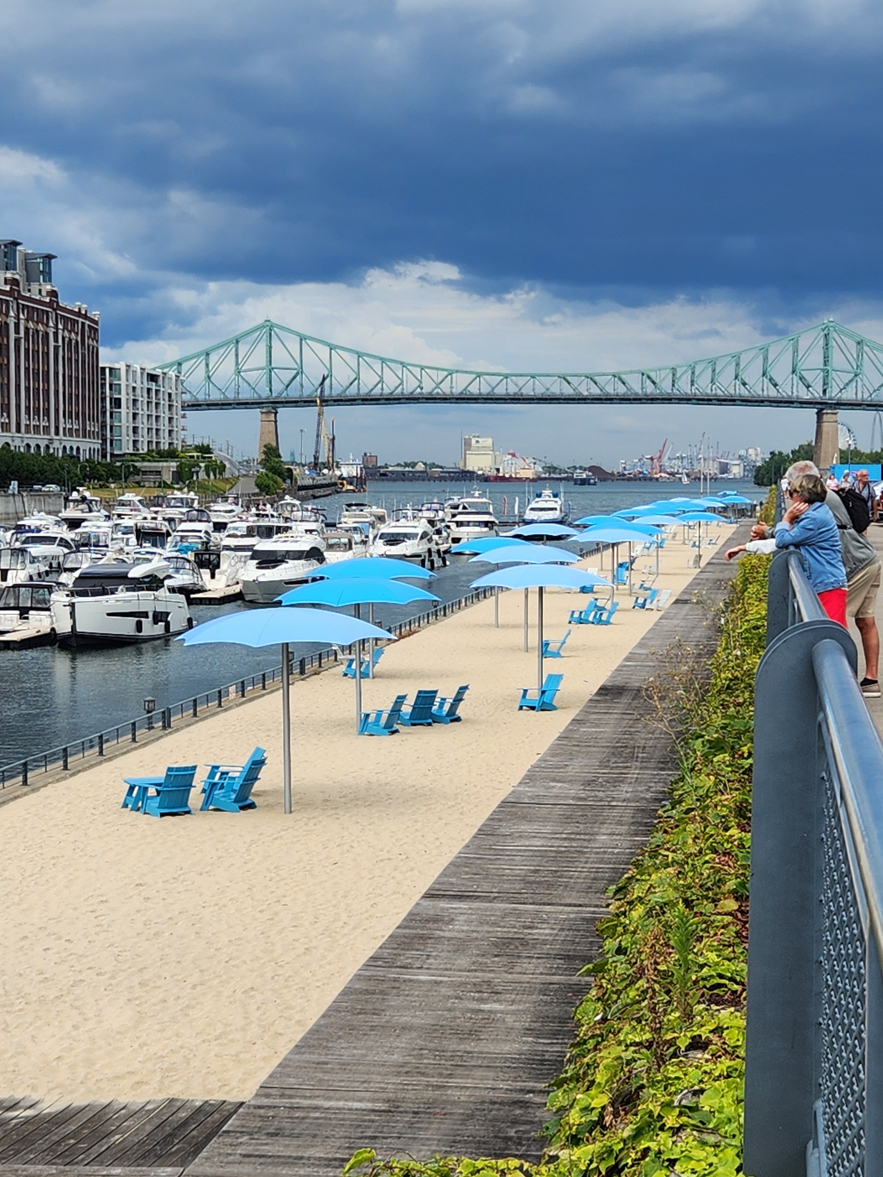 Un site un peu oublié, la Plage de l’Horloge. Le site est pourtant ouvert tous les jours de 11h à 18h, mais c’est plutôt vide et donne une impression d’abandon. Quelques personnes assises dans la zone devant le pont Jacques-Cartier, mais c’est tout. Tous les brumisateurs ne fonctionnent plus, il n’y a plus de restaurant. Il n’y a également plus personne à l’accueil, on fait juste pousser une petite barrière. L’entrée est libre.