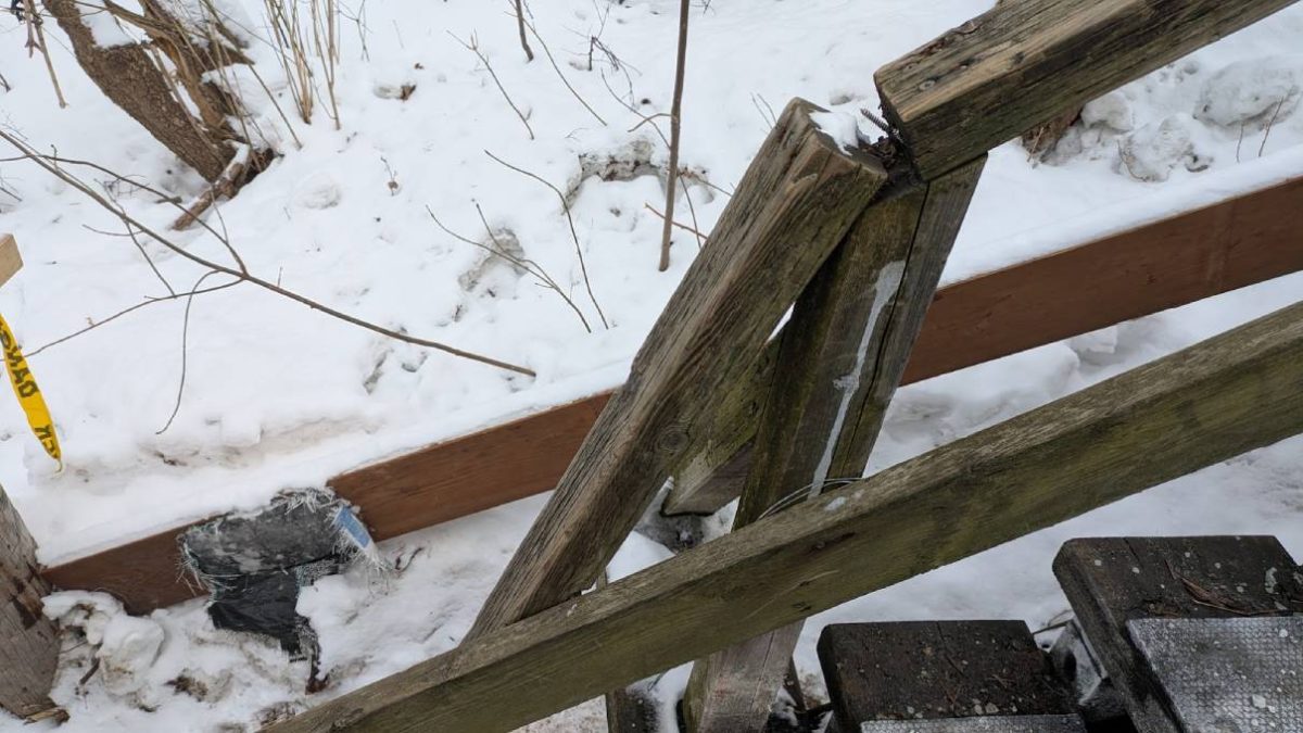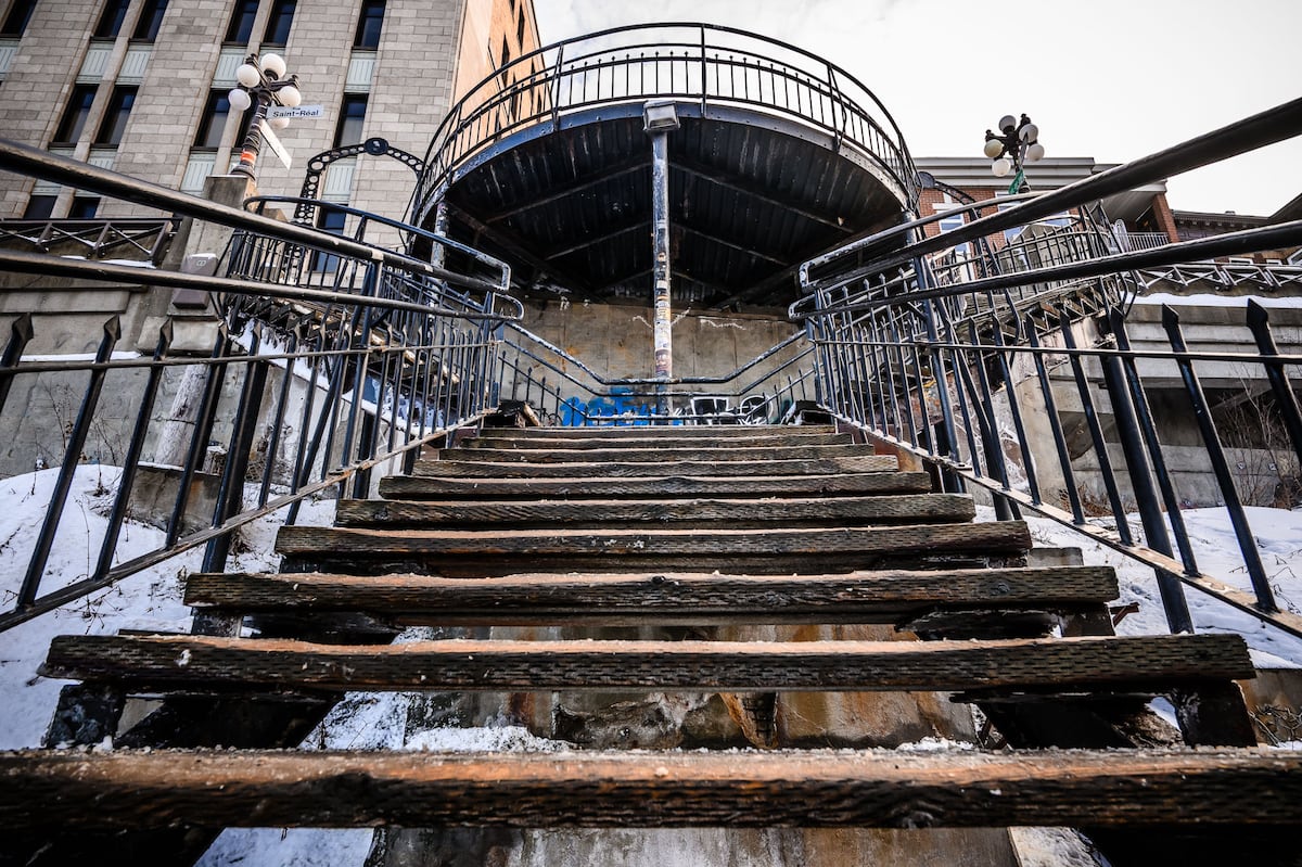 Certaines composantes de l’escalier du Faubourg se trouvent dans un état avancé de détérioration. (Jocelyn Riendeau/Le Soleil)