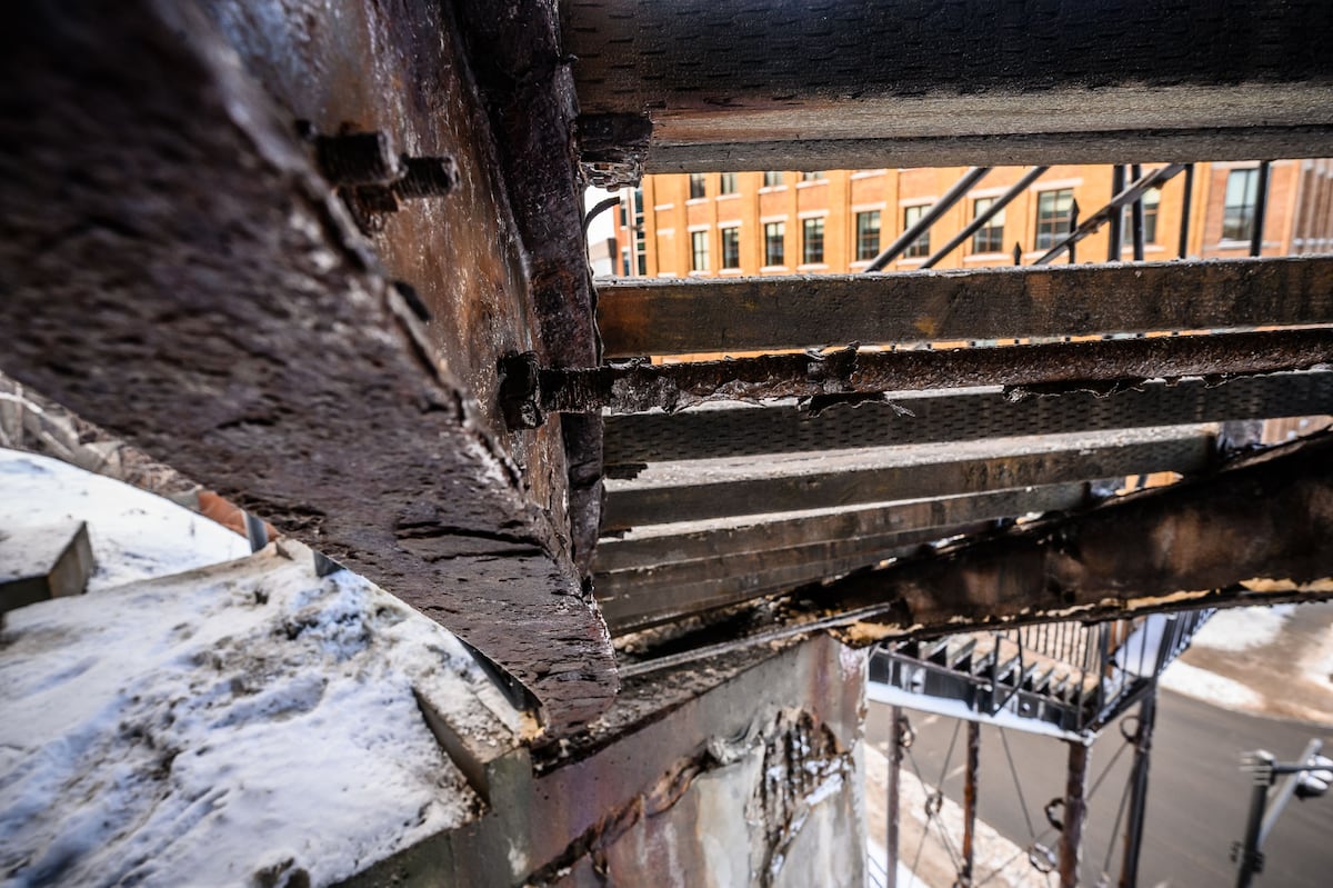 La corrosion est bien visible sur l’escalier du Faubourg. (Jocelyn Riendeau/Le Soleil)