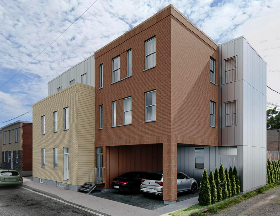 Image projetée du 709, rue Kirouac. Il s’agissait d’une version préliminaire du projet, issue d’un Appel de projets du Fonds pour soutenir les projets durables en habitation, déposée à la Ville de Québec en 2024.