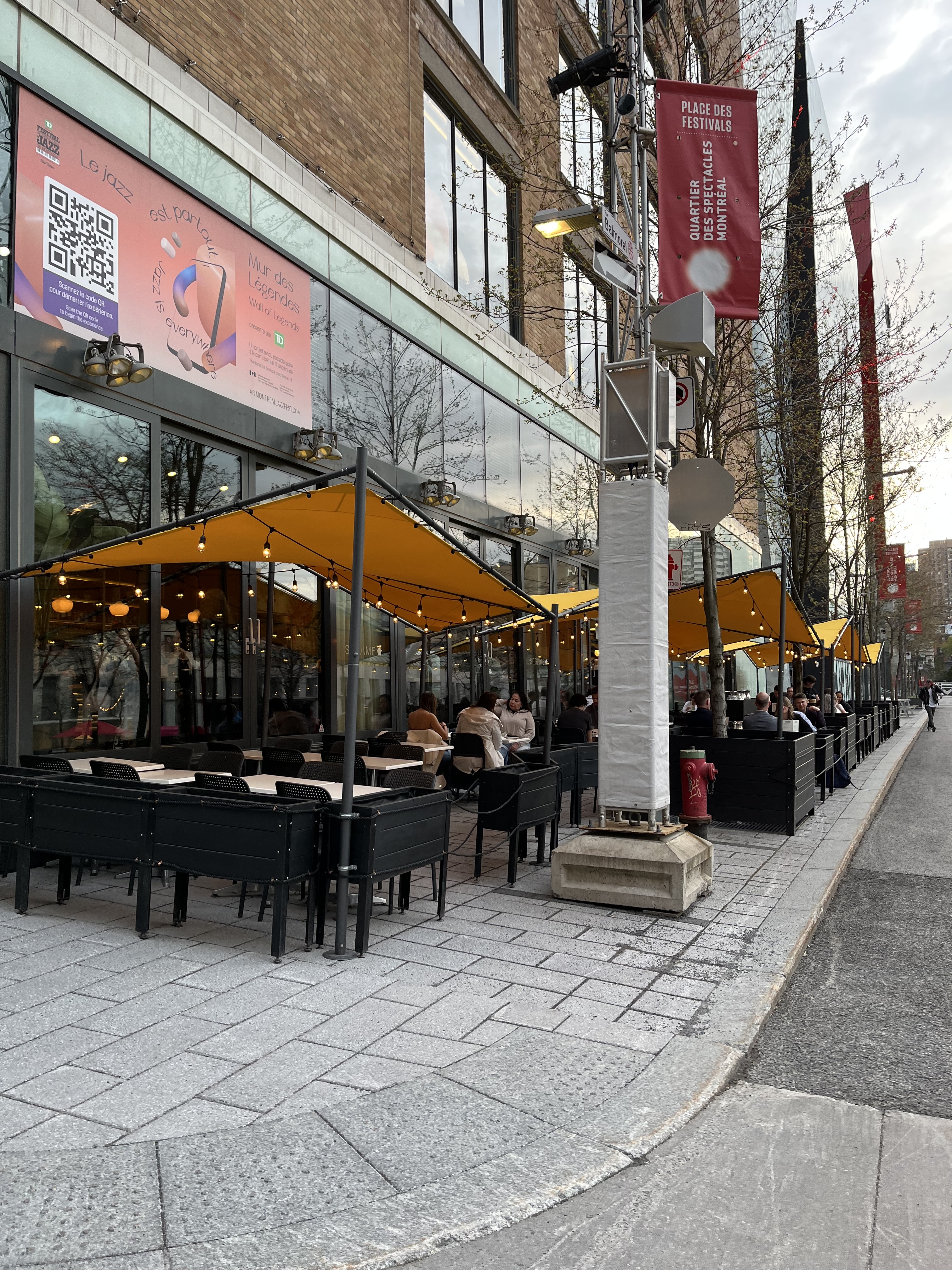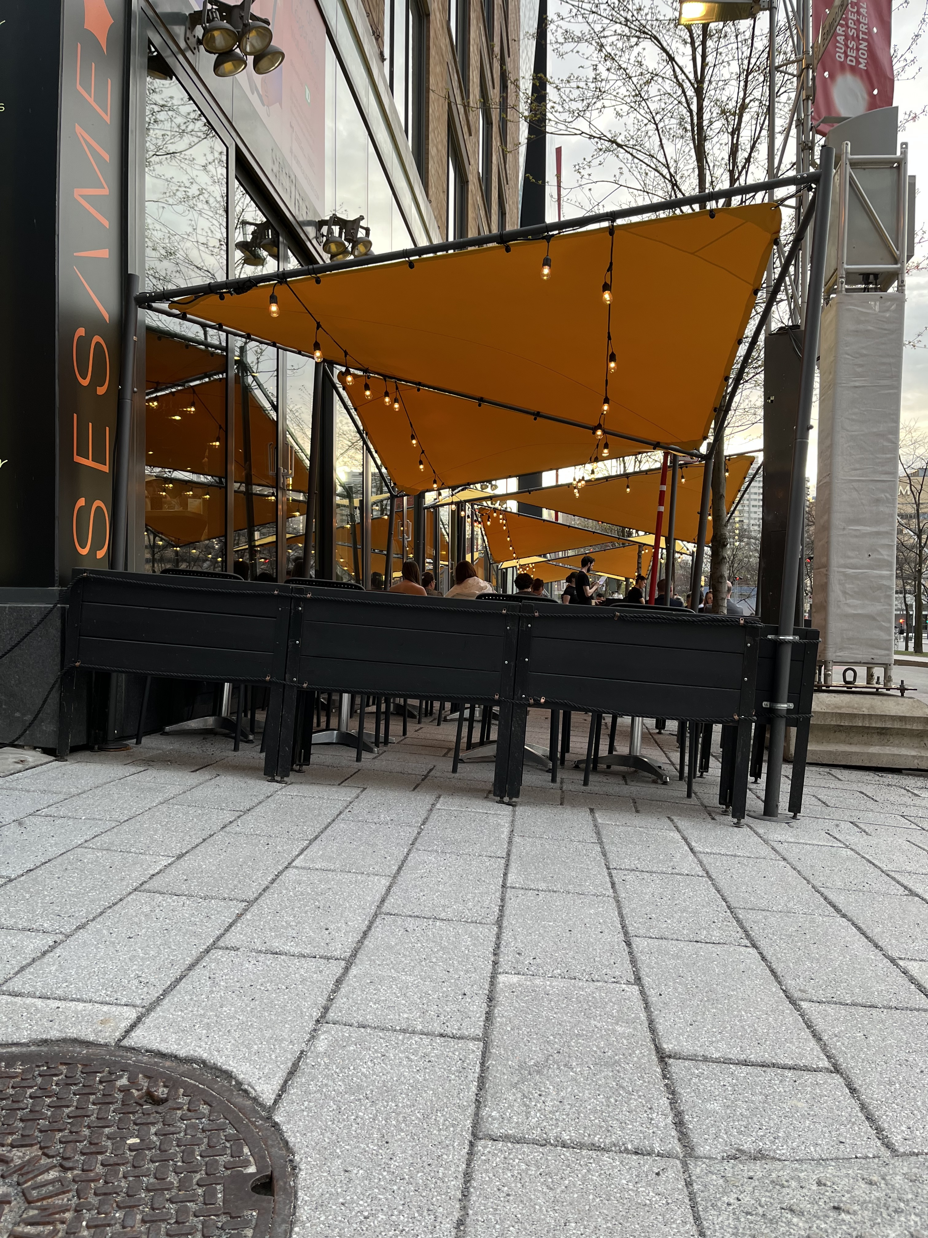 Ça une terrasse fort élégante tout en étant efficace. Comme le trottoir est très occupé j’imagine que la rue est piétonne?