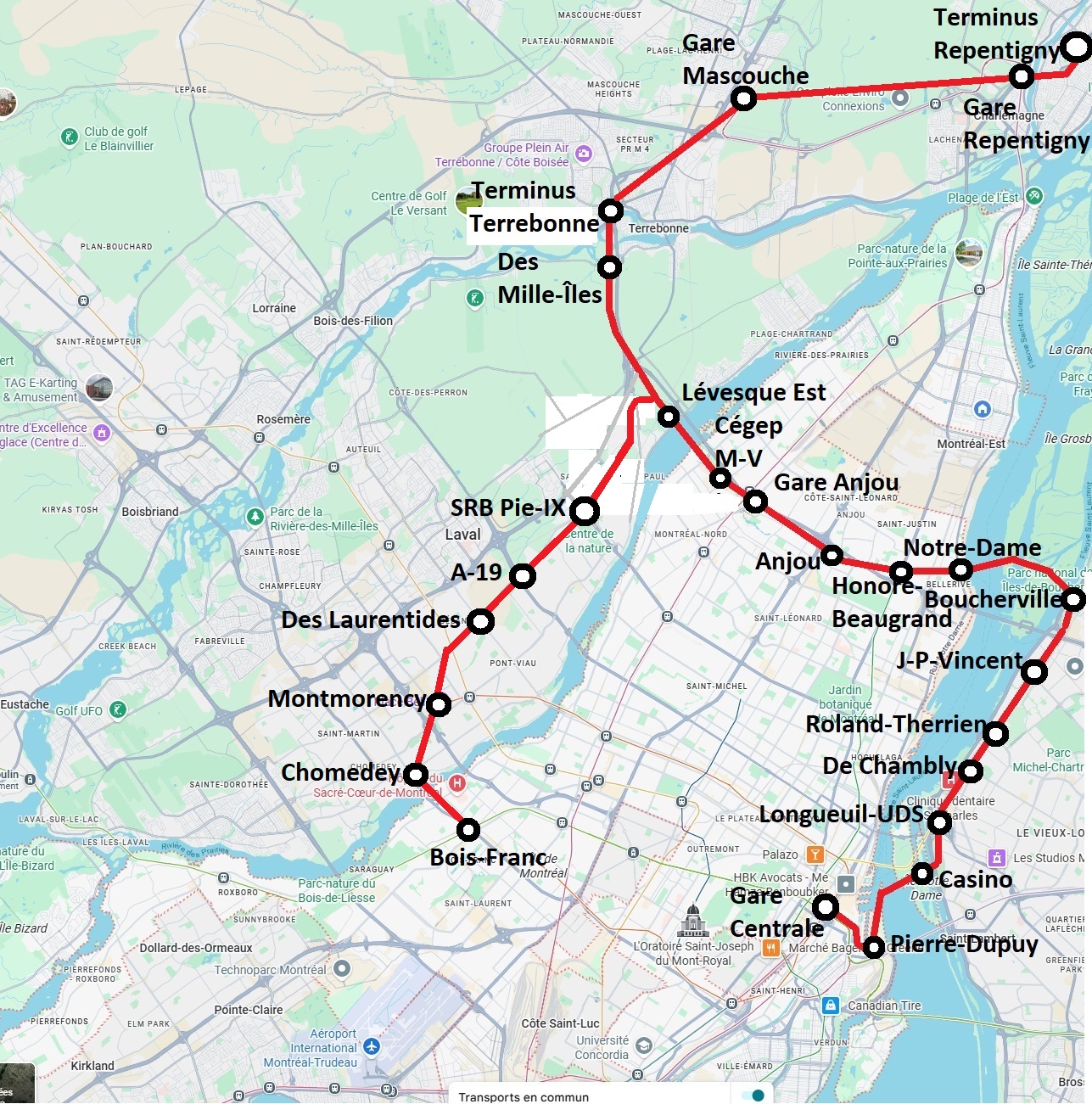 Très intéressant cette proposition via la rive-sud, ça résoud trois problèmes, le dédoublement avec la ligne verte du métro, le besoin d’une ligne le long de la 132, et l’entrée au centre-ville.