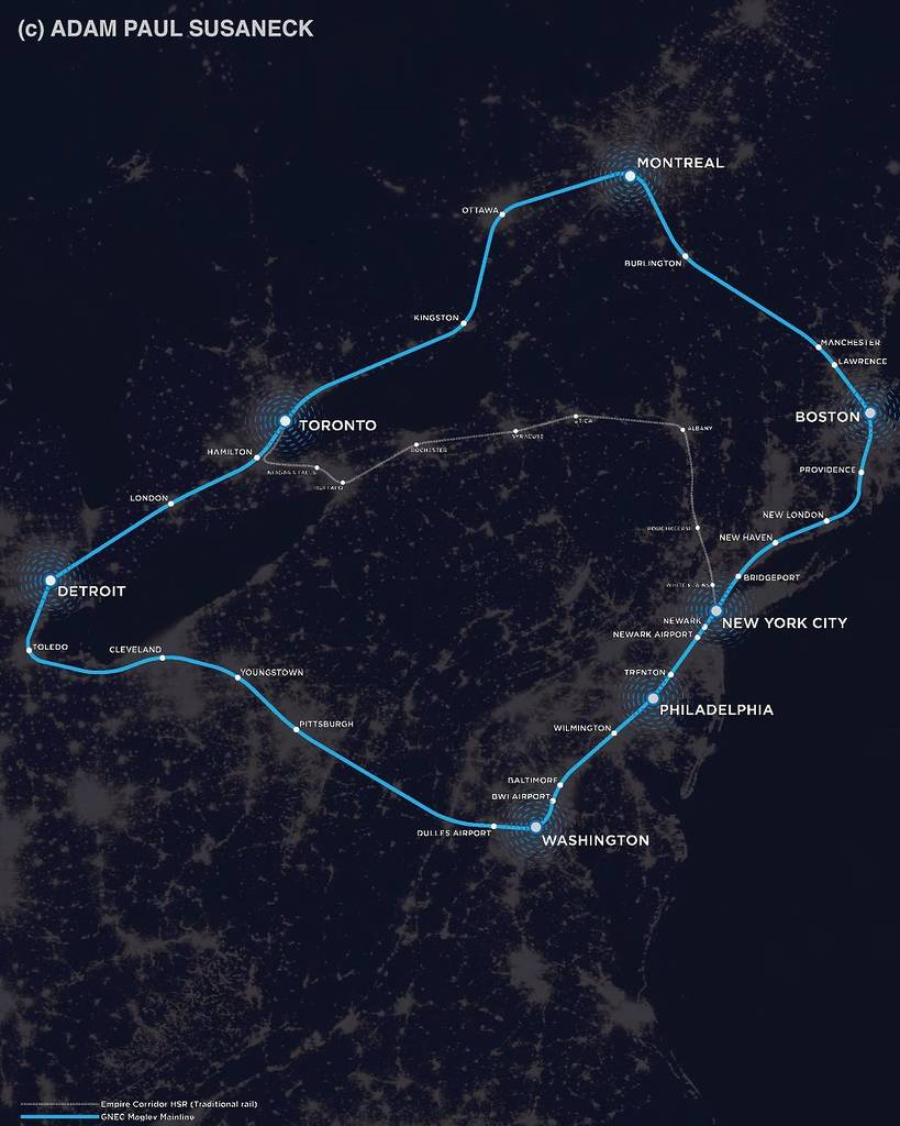Ça me rappelle un peu le projet Québec-Rail de Québec solidaire lors des dernière élections, par contre Québec rail était basé sur du train conventionnelle et la bonification des emprises existantes (pour un budget beaucoup plus faible que ce méga réseau de TGV haha!) l’idée était d’avoir un réseau complémentaire au TGV justement pour rejoindre d’autre villes