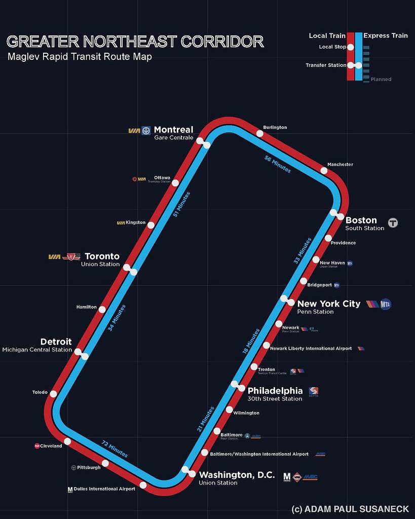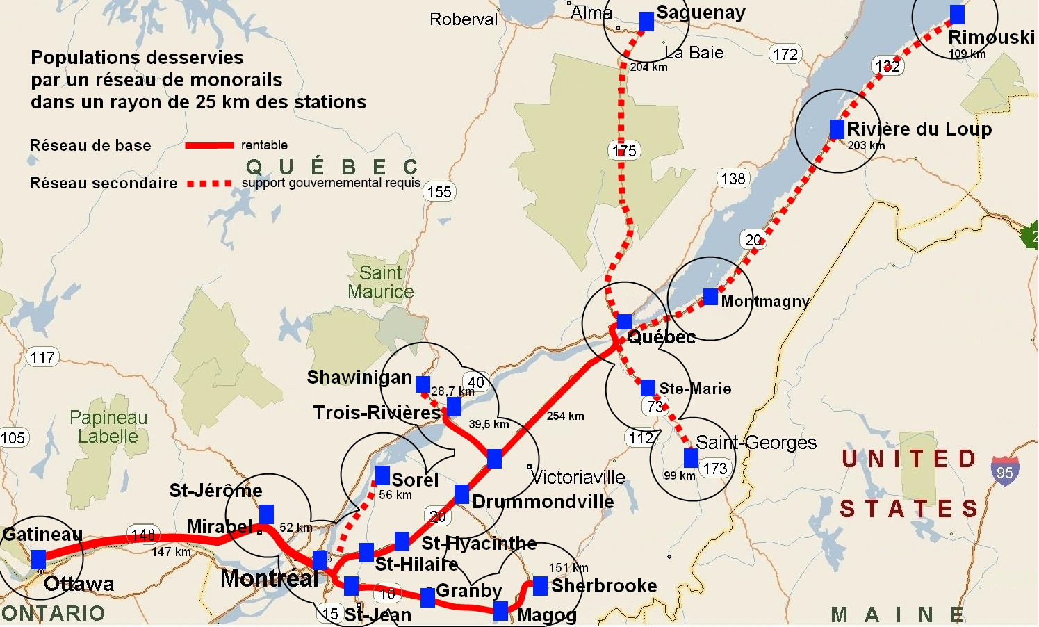La technologie n’existe pas. Les monorails tel qu’ils existent présentement sont principalement des systèmes locaux fonctionnant sous un modèle similaire aux systèmes de métro traditionnels.
