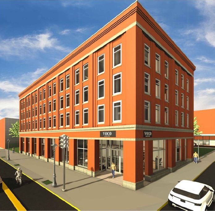La demande vise à autoriser la construction d’un bâtiment commercial de cinq étages abritant un établissement hôtelier de 55 chambres, un stationnement pour 8 vélos et un toit vert.