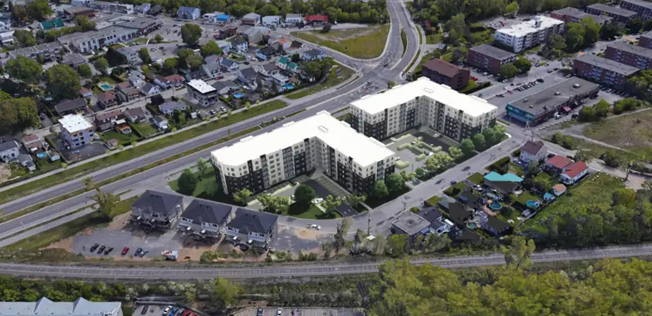 Projet de 240 unités résidentielles réparties sur 2 bâtiments de 6 étages.